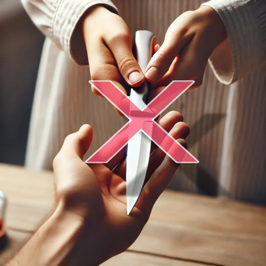 손잡이 부분을 상대방에게 주고, 날카로운 부분은 자신 쪽으로 향하게 하는 것이 중요합니다.