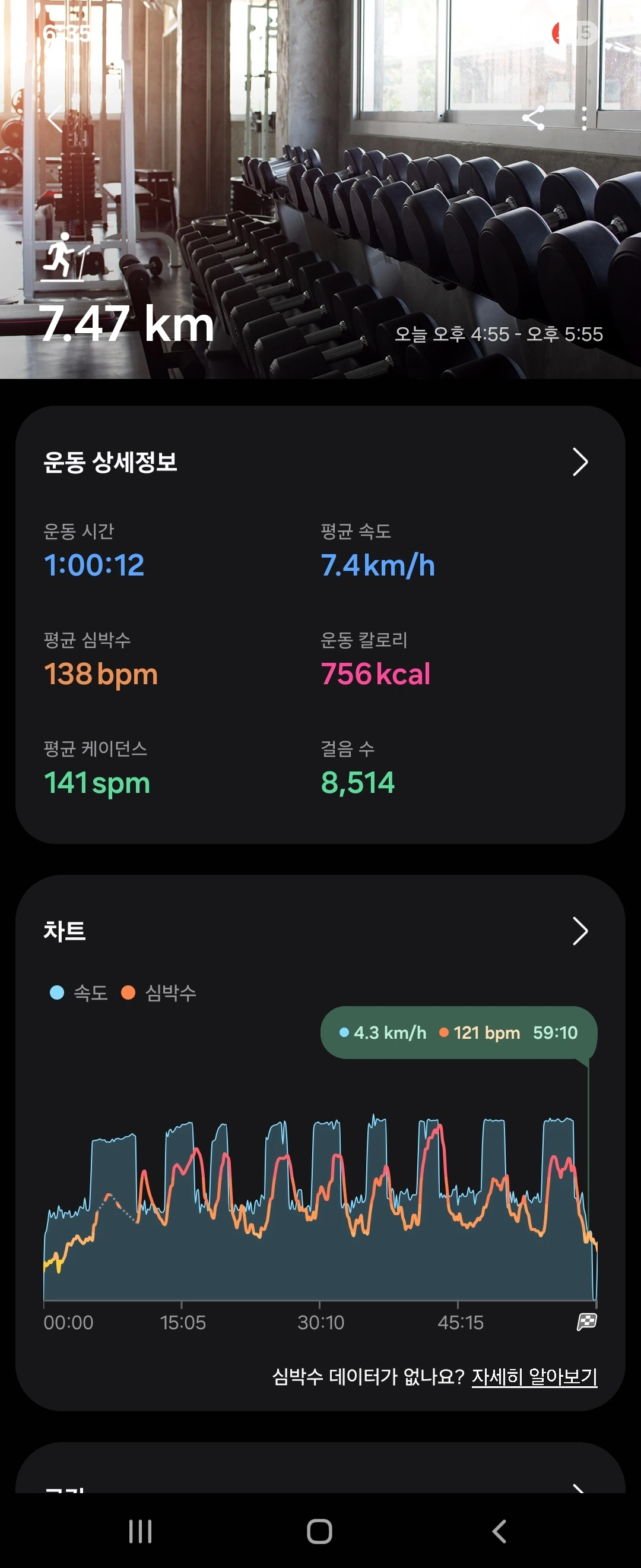 오늘에서야 정확히 ‘러닝머신’ 모드를 선택해야 했다는 걸 깨달았다.