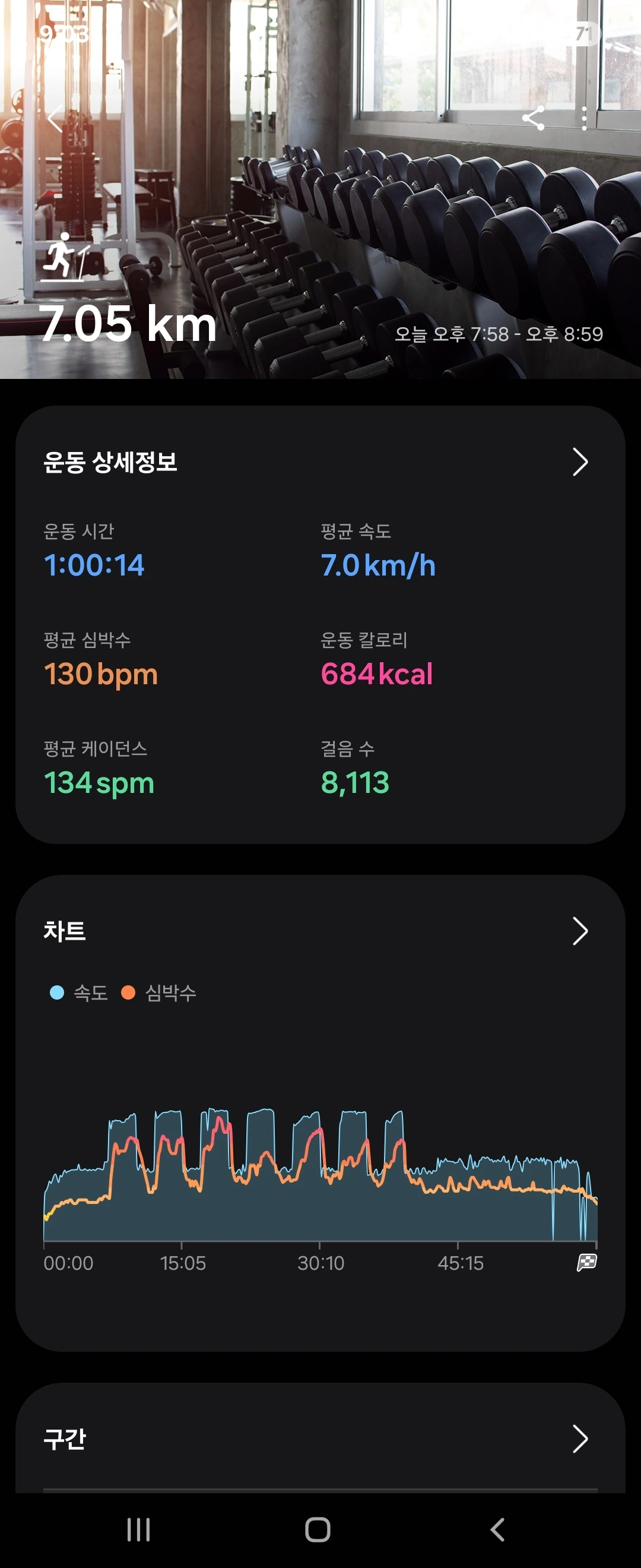 꾸역꾸역 40분간 인터벌을 이어가다 결국 남은 시간은 그냥 걸었다.