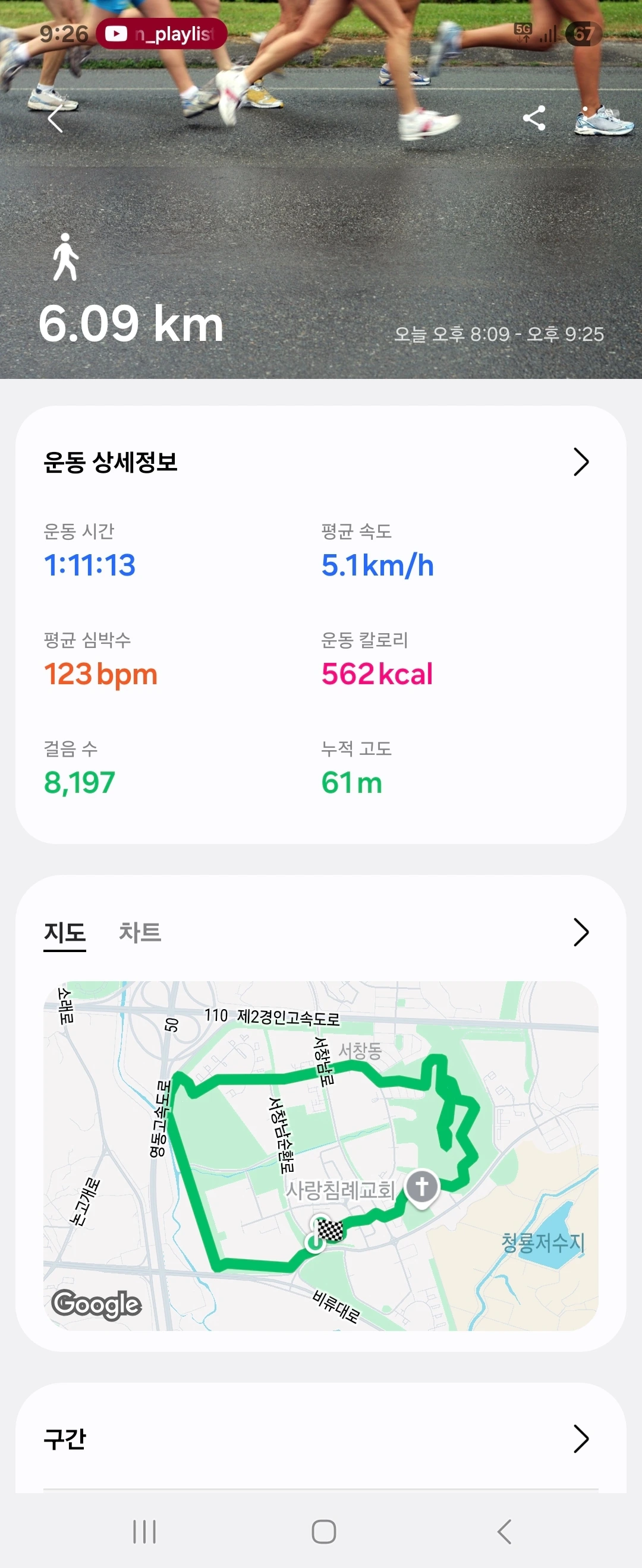 [달리기 일지 – 2025.7. 9. 20:09~21:25]