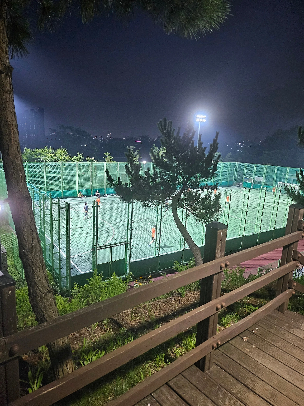 풋살장에서 축구하던 아저씨들이 보여 반가운 마음에 잠깐 멈춰 섰더니—