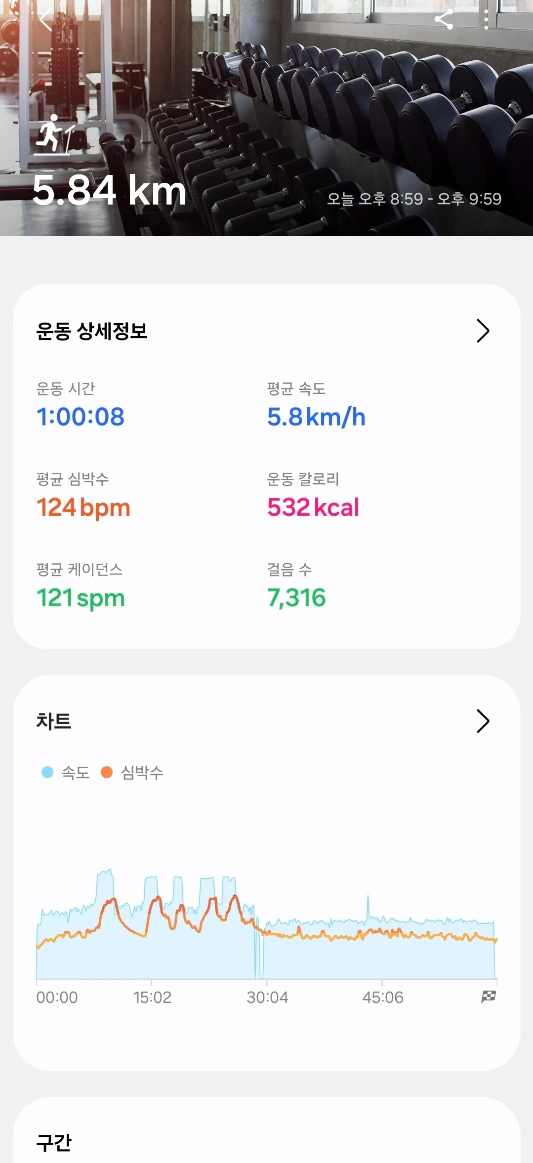 특이사항 : 30분쯤 러닝머신 타는데 중요한 전화가 와서 빗길을 걸었음