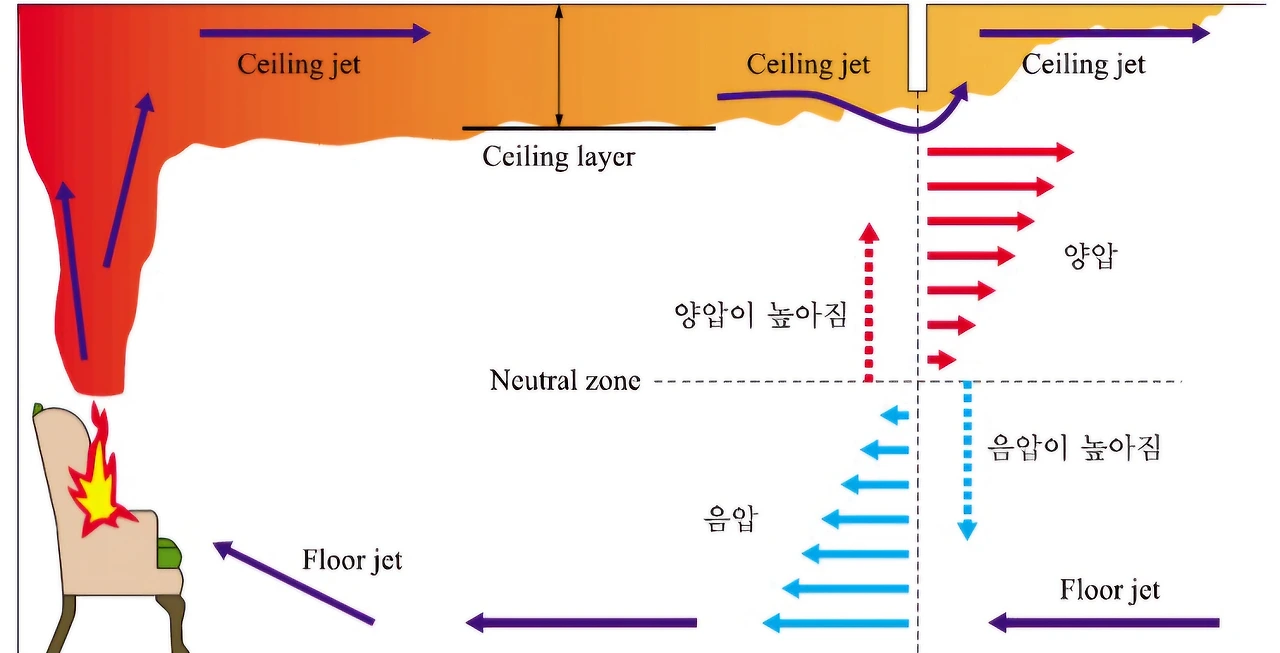 연기가 복도와 계단을 통해 순식간에 위층으로 올라간다.
