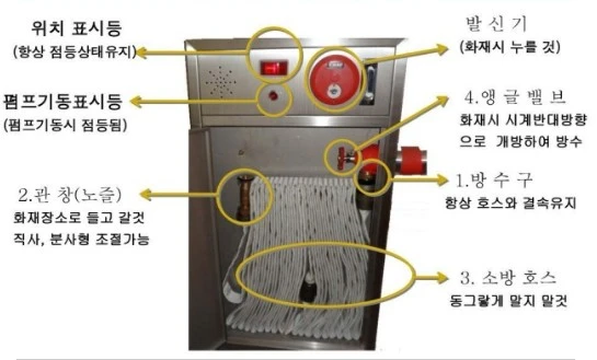 옥내소화전을 사용하는 일이 없기를 바라지만, 만일의 사태에 대비해 사용법을 미리 숙지하는 것이 중요합니다.