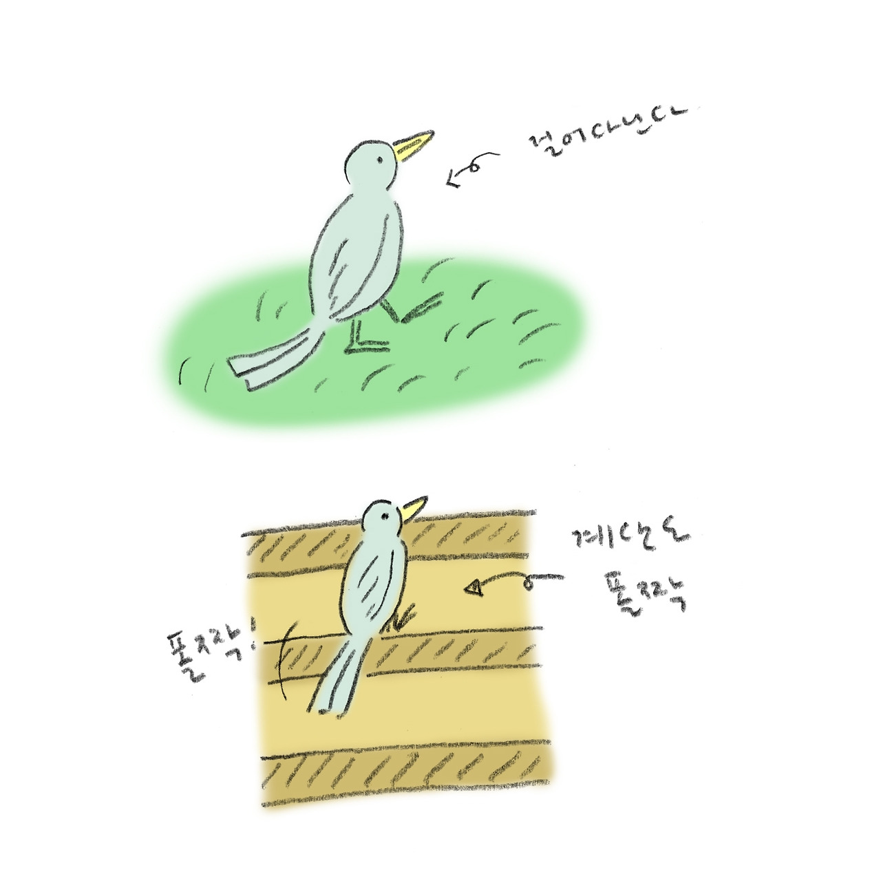 새들은 높은 곳을 좋아하는 새와 낮은 곳을 더 좋아하는 새가 있어서, 한 나무에서 여러종의 새가 사이좋게 지내기도 한다는 글을 읽은 적이 있어요. 그 모습을 상상하면서 귀엽다고 생각했습니다.