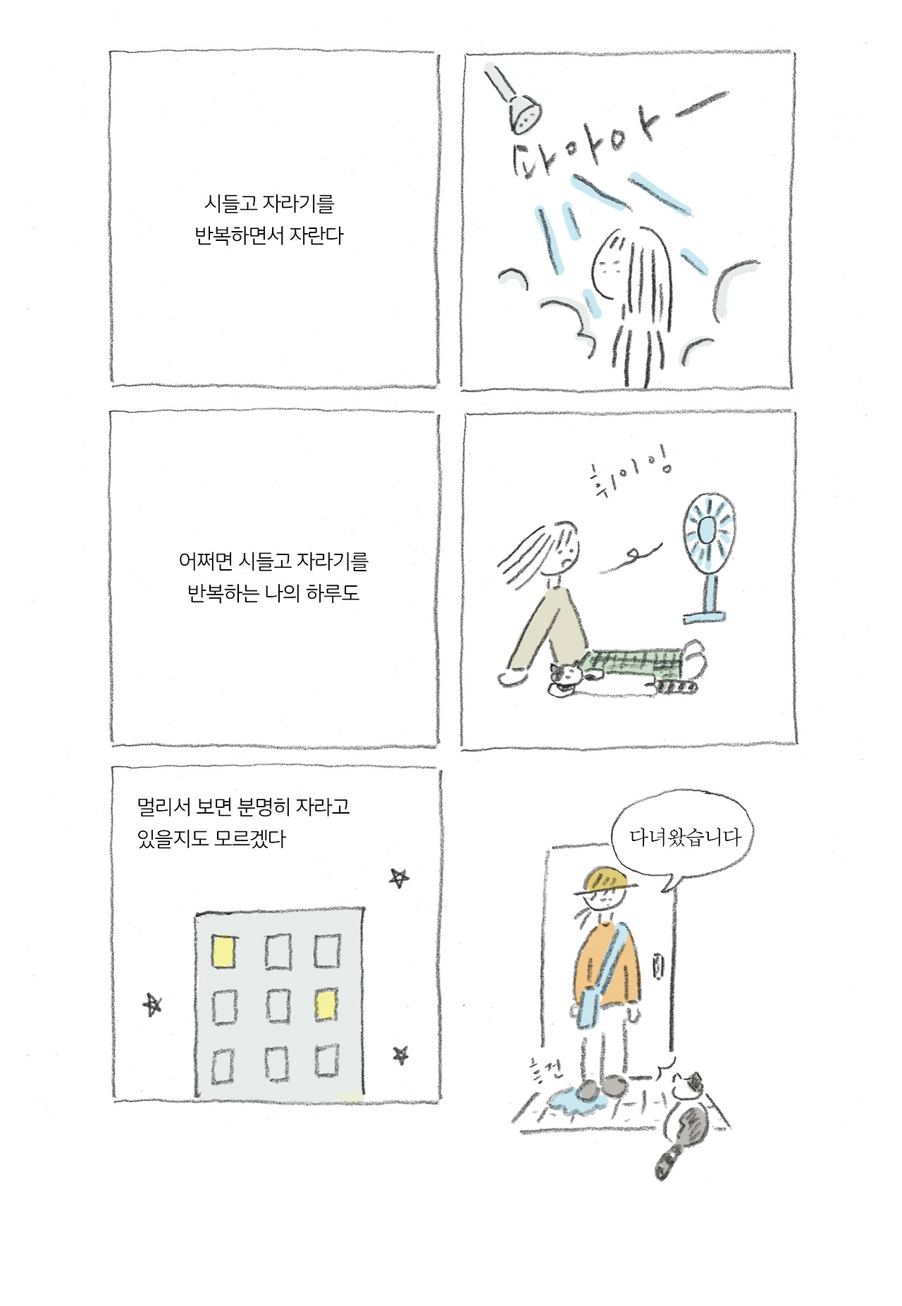 매일 같은 길을 걷지 않았다면 계속 몰랐을거다. 버스를 타고 지하철을 타러가는 길에 잠깐 나무를 보고, 멀리있는 산을 슬쩍 훔쳐 볼 땐 계절의 변화와 식물의 자람이 빠른듯 느껴졌다. 저들은 별 어려움 없이 쉬이 자라는 것 같았다. 하지만 매일 같은 길을 걸으며 식물 하나 하나의 생과 사를 곁에서 지켜 보면 부침없이 자라는 건 없다는 걸 알게된다. 하루하루 시들고 또 자라지만 숲은 여전히 푸르다는 사실도 역시 숲을 걸으며 알았다.