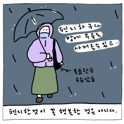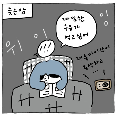 태풍이 서울을 비켜가긴 했지만 비가 많이 오던 날 밤이었습니다. 갑자기 우유가 먹고 싶어졌어요. 따뜻한 우유를 먹으면 잠이 잘 올 것 같다는 생각을 했던 것 같아요. 원래 밤에 돌아다니는 것을 좋아하는데 지금 사는 곳은 골목이 많고 어두워서 밤에 거의 나가지 않거든요. 그런데 이 날은 '그러고보니 가까운 곳에 편의점이 생겼지'하면서 우유를 사러 나가보았습니다.