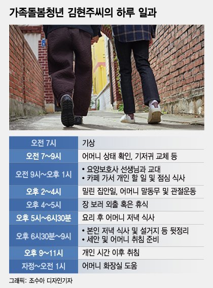 서울 구로구에서 아버지, 아픈 어머니와 함께 살고 있는 26살 김씨. 김씨의 하루는 취업 준비를 위해 공부를 하거나 이제 막 직장생활을 시작하며 기회가 생길 때마다 문화생활을 즐기는 또래 친구들과는 조금 다르게 흘러간다. 대부분의 일과가 6년 전 뇌출혈 진단 이후 거동이 어려워진 어머니를 중심으로 돌아간다.