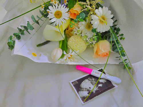 신랑은 내 목소리의 떨림을 눈치채고 있었던 걸까. 무뚝뚝하게 보냈던 나의 임신 소식을 듣고 퇴근길에 꽃을 선물해 주며 축하한다고 안아 주었다. 신랑의 따뜻한 말과 행동에 나는 울음을 터트릴 수밖에 없었다. 임신이 불행하다고 느꼈던 나의 모든 다양한 감정들을 신랑에게 표현하진 않았지만, 어쩌면 신랑은 나의 카톡을 보고 눈치챘던 건 아닐까. 우리는 그렇게 몇 분 동안 아무 말도 없이 울었다 웃었다를 반복했다.