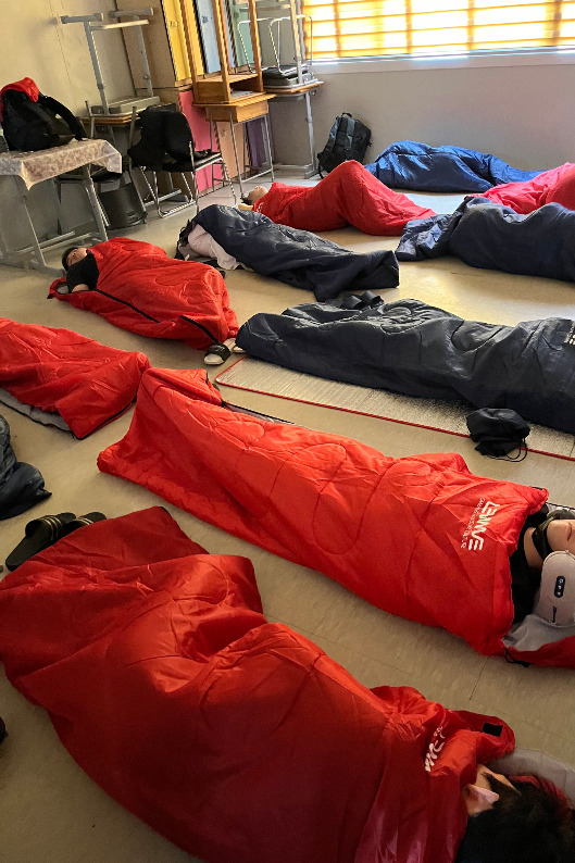 첫 숙소는 유치원 시설이라 잠잘 곳이 마땅치 않아 빈교실에서 취침을 하였다. 새벽에 도착하여 짐을 옮기고 오전시간에 취침을 했는데 교실바닥이 딱딱할지라도 잠은 잘 왔던 것 같다. 이불이나 침대도 필요 없이 침낭하나면 충분했다.( 등이 좀 아프긴 했다..)