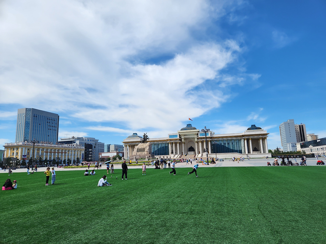 밥을 먹고 난 후 근처에 칭기즈칸 동상을 볼 수 있는 큰 광장으로 이동했다. 하지만 이역시도 스마트폰을 이용하면 안 되고 지도를 봐도 길을 정 모르겠으면 주변 현지인에게 물어봐야 했다. 우리가 물어본 현지인들 중에서 친절하게 길을 알려주신 분이 있어서 안내를 받고 같이 사진도 찍었다. 몽골도 다른 나라와 다를 것 없이 도움을 청하는 외국인을 보면 최대한 도와주려는 사람들이 분명히 있었다. 개인적으로 여태까지 여행했던 나라들만 해도 다른 외국인을 도와주려는 사람이 항상 있었는데 그 점이 감사했다.