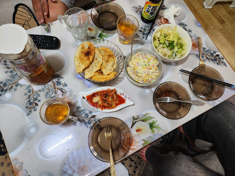 장을 보고 난 후 믿음이의 집으로 가서 저녁식사 준비를 하였다. 믿음이 어머님이 호쇼르(몽골의 전통음식인 튀긴 만두)를 만드시고 있었다. 우리는 같이 만드는 것을 도와드렸다. 호쇼르를 만드는 것은 일반적으로 우리가 한국에서 만두를 만드는 것과 크게 다르지 않았다. 다만 만두피 안에 넣는 속재료가 고기과 양파, 양꼬리만 들어간다는 점이 다르다. 양념 같은 경우는 마음대로 한다는 거란다.