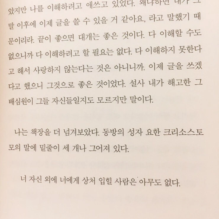 하지만!! 마음은 변할 수 있지만 사람은 변할 수 없다. 사람은 고쳐 쓰는 게 아니다. 내가 지금 누군가로부터 상처를 받고 있다면 더 깊이 다치기 전에 정리할 수 있는 결단력도 필요하다. 사실 내가 지금의 나에게 하고 싶은 말.