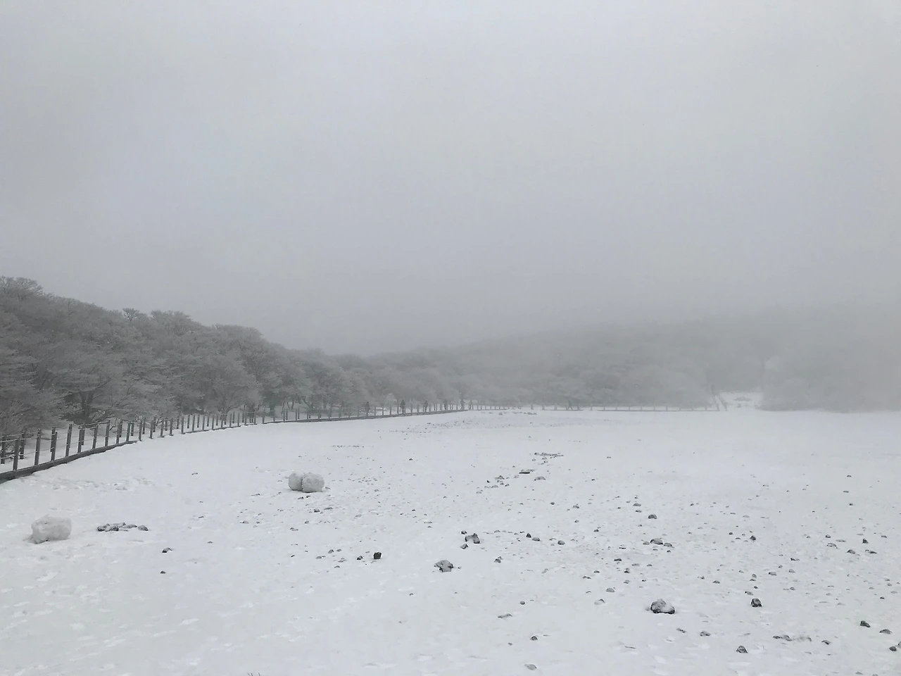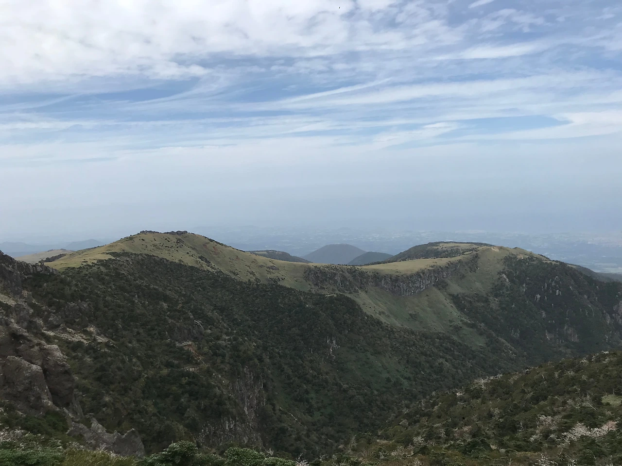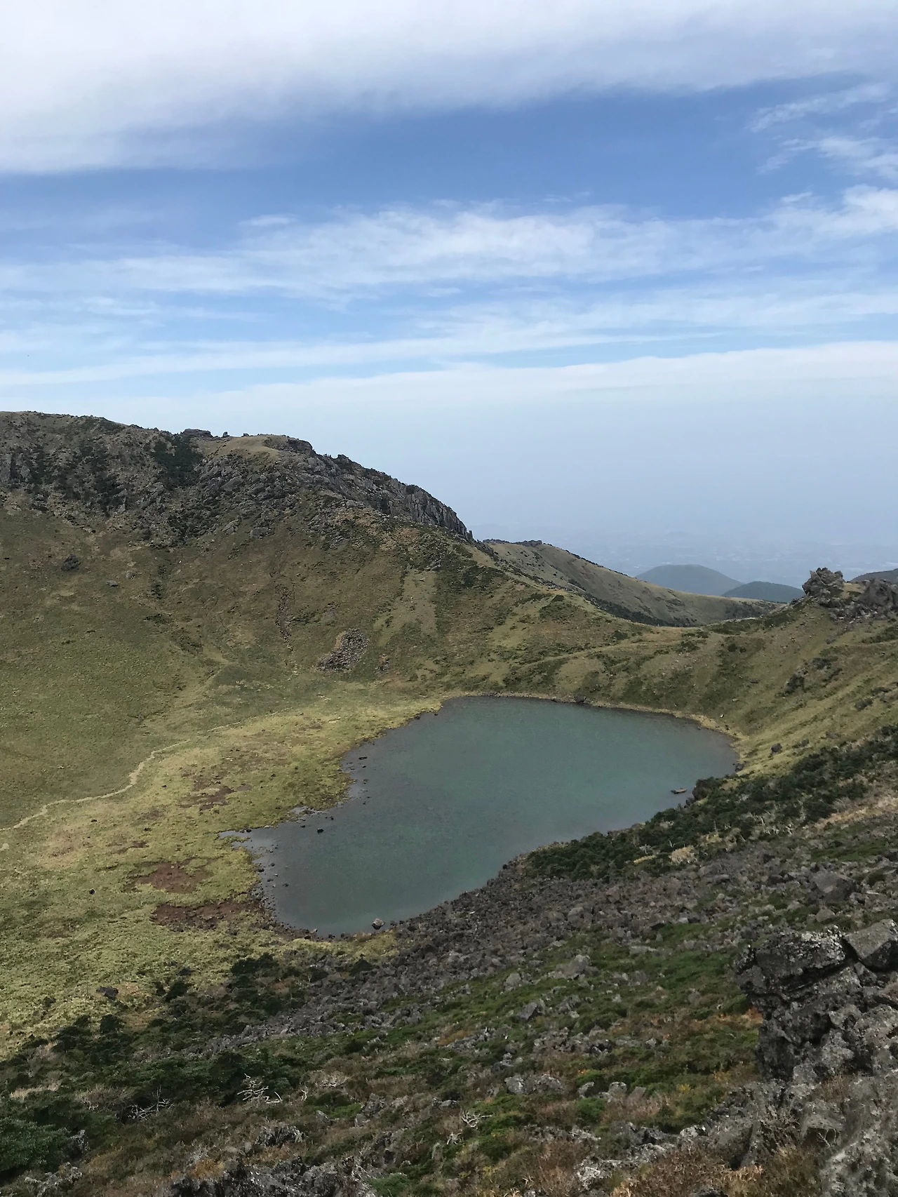 어느 순간 나무가 보이지 않는 평지가 나타났고 정상에 거의 근접했음을 알 수 있었다. 저 멀리 사람들이 옹기종기 모여 있는 것을 보자 사람들 너머 백록담을 볼 수 있겠구나 하는 마음에 한달음에 달려갔다.