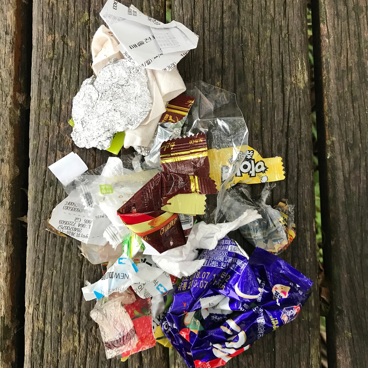 길고 어려운 산행도 나를 고통스럽게 했지만 한 가지 더 고통스러운 게 있었다. 바로 산행에서 만나는 쓰레기들이었다. 바닥만 보고 걸으니 사람들이 버린 쓰레기들이 눈에 더 잘 보였다. 올라올 때도 있었지만 어째 내려가는 길에 더 많은 것 같았다. 아마 체력 소모 때문에 열량을 채우기 위해 까먹는 사탕이나 초콜릿 등 주전부리를 까먹고 껍데기를 바닥에 버리는 것 같았다.