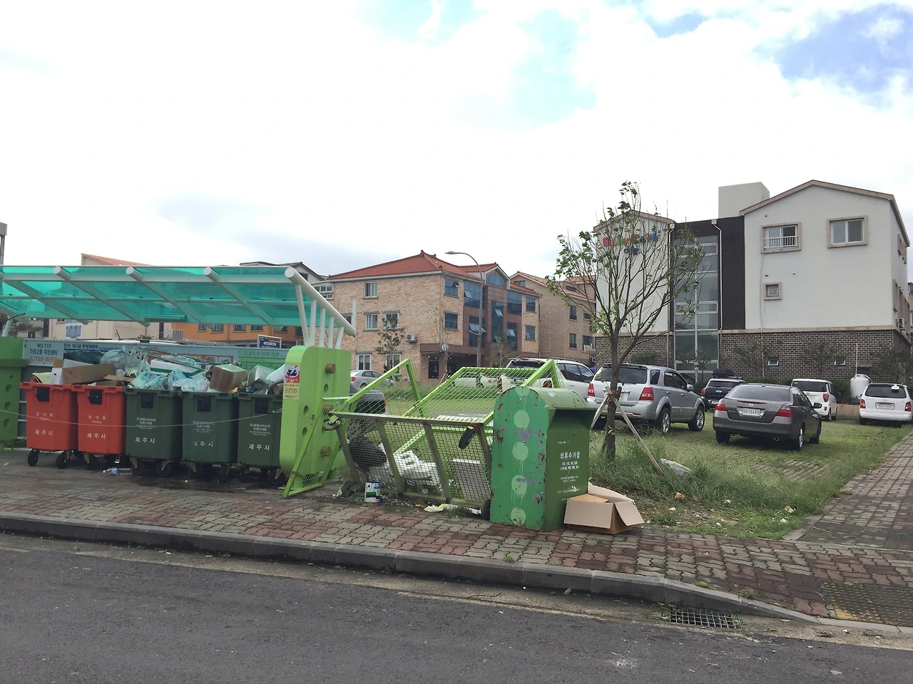 다행히 스쿠터는 제 자리에 잘 있었다. 안도감에 가슴을 쓸며 도로를 보니 길은 온통 쓰레기 천지였다. 바람에 날아온 온갖 쓰레기가 바닥을 뒹굴고 있었다. 나무는 뽑혀 있었고 신호등은 누워 있었다. 신호등이 인도에 누워 있는데 그 모습이 정말 생경했다. 한 번도 신호등을 내려다본 적이 없었는데.. 위에서 올려다보던 신호등보다 왠지 좀 큰 것 같았다.