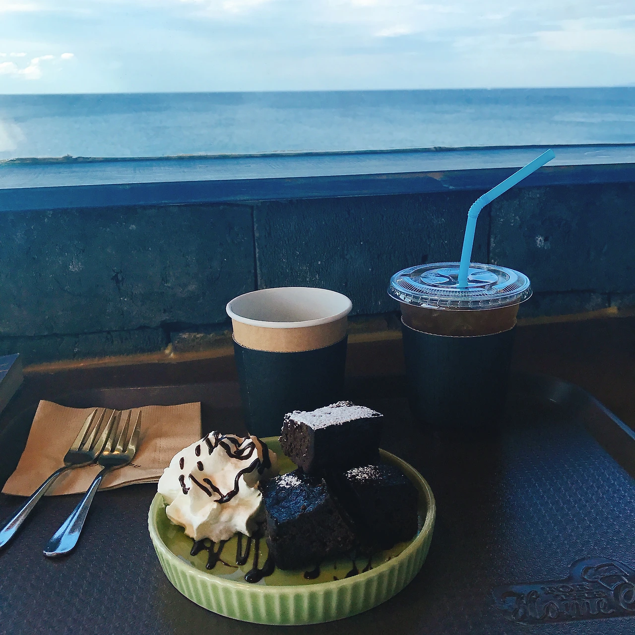 종달리의 디저트 가게를 가다가 도착시간 즈음엔 디저트가 모두 떨어져 있을 것이라는 불안감이 엄습해 동복리쯤에서 갈 곳을 찾았다. 폐건물에서 사람들이 많이 나오는 것을 본 동행인이 한 번 들어가 보자고 해서 봤더니 여기가 바람벽에 흰 당나귀 건물. 아, 사람들이 말한 곳이 여기구나. 지인들로부터 뷰가 아주 좋다는 이야기를 들었었다. 하지만 들어가자마자 알 수 있었다. 이 곳 커피가 맛이 없으리라는 사실을.. 그래도 동행인이 바다뷰에 입을 벌리고 사진을 찍는 것을 보고 이런 곳도 한 번쯤은 괜찮겠지 싶어 커피와 브라우니를 주문했다. 커피 맛 대신 동복리 앞바다 맛이 참 좋았다.