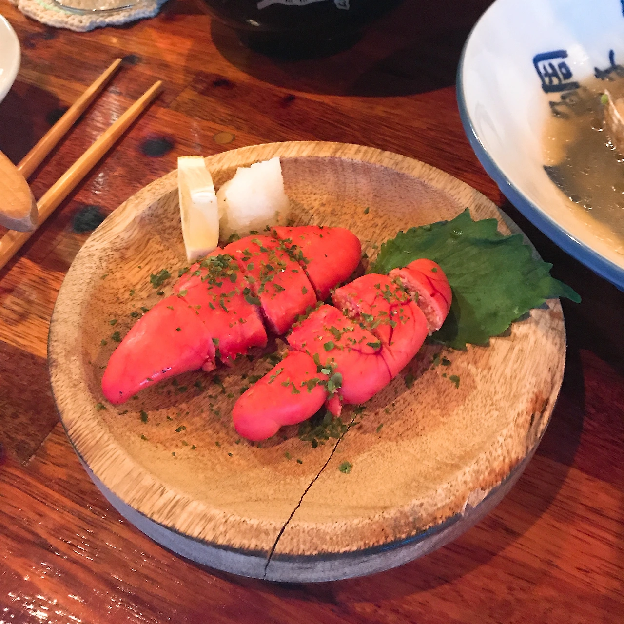 바지락 사케찜은 간간하게 맛있었으나 해감이 덜 됐는지 모래가 좀 씹히는 조개가 너댓 개가 있었다. 문제는 명란구이였는데.. 심야식당에서 본 명란구이 에피소드는 순정의 스트리퍼가 힘들 때마다 찾아와'명란구이 미디엄 레어!'를 외치는 내용이었는데, 나중에는 모두 명란구이라는 말없이 '미디엄 레어!'로 주문한다는 내용이었다. 내가 시킨 명란구이는 웰던으로 오버 쿠킹 되어 하나를 먹고는 손이 가지 않았다. 그냥 두기에는 아까워 조금 덜 익은 부분을 젓가락으로 찾아 먹었는데 나중에 보니 음식을 헤집어 놓은 꼴이 되어 민망했다. 짠 입맛을 중화시키려고 유자 사케 한 잔과 모찌리 두부를 시켰다. 생 유자를 갈아 넣은 것 같은 상큼한 맛의 사케와 달달한 모찌리 두부가 입맛을 정리해 줬다.