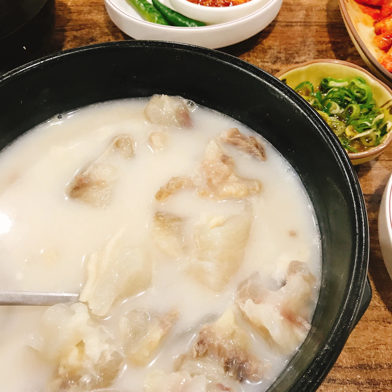 도가니탕을 제대로 먹어본 적이 없었다. 설렁탕보다 더 영양분이 많다는 건 알지만 한 그릇을 온전히 시켜 먹기에는 엄두가 나지 않았다. 도가니탕을 시켜도 고기 몇 점은 올려주겠지 싶었는데 정말 고기 하나 없이 올 도가니만 있었다. 국물이 식기 시작하자 겉 표면에 젤라틴이 형성되는 게 보였다. '100% 사골과 도가니로 끓여 식으면 묵이 됩니다'라는 홍보 팻말의 말이 사실인 것 같았다. 식감은 나쁘지 않았으나 고기의 식감 없이 흐물흐물 젤라틴만 씹고 있자니 좀 지겨워졌다. 국물도 진해서 먹으면 먹을수록 입에 쩍쩍 달라붙는 느낌이 들었다. 한마디로 좀 느끼한 느낌. 그나마 깍두기와 김치 덕분에 한 그릇 클리어할 수 있었다. 김치는 젓갈 냄새가 아주 콤콤하게 났는데 이걸로 김치찌개를 끓이면 대박이겠는데? 하는 생각을 하며 도가니탕을 먹었다.