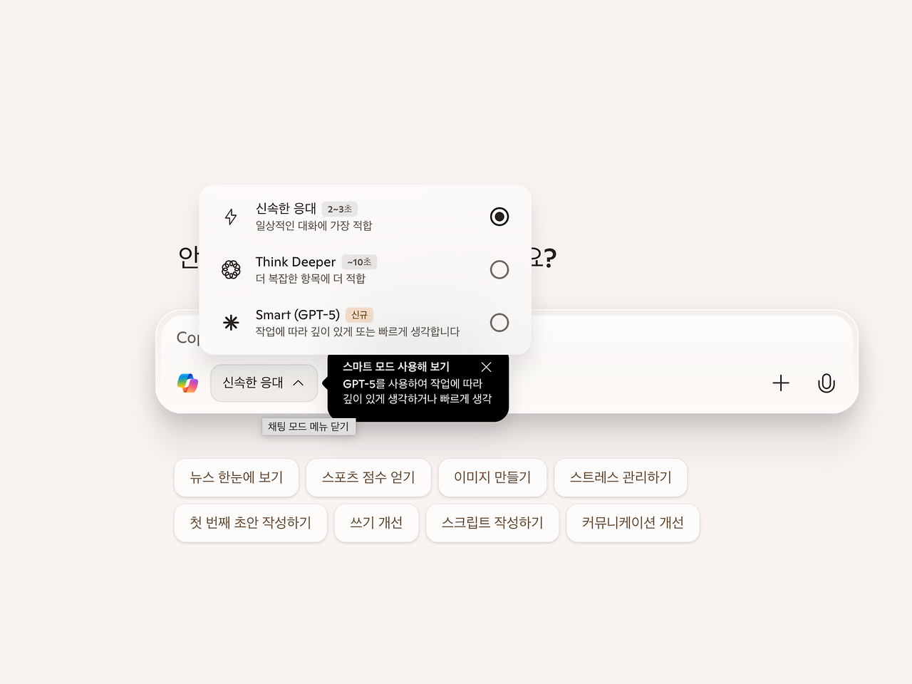 저는 Copilot를 주로 문서 요약할 때 진짜 많이 써요. 신속한 응대, Think Deeper, Smart 등 다양한 기능을 활용해볼 수 있습니다.