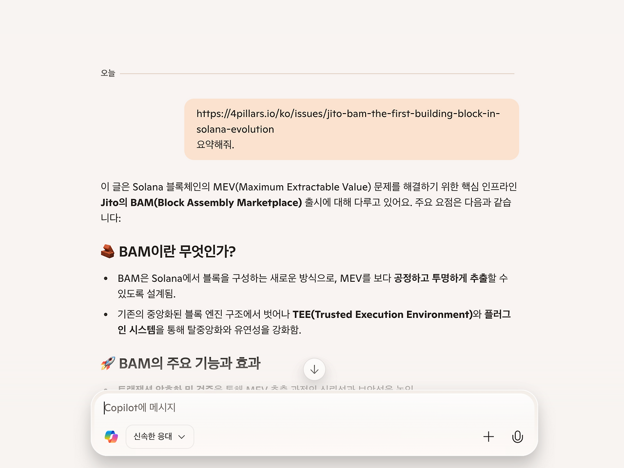 긴 아티클 요약하는데는 코파일럿이 가독성 좋고 빠르게 분석해주는 것 같습니다.