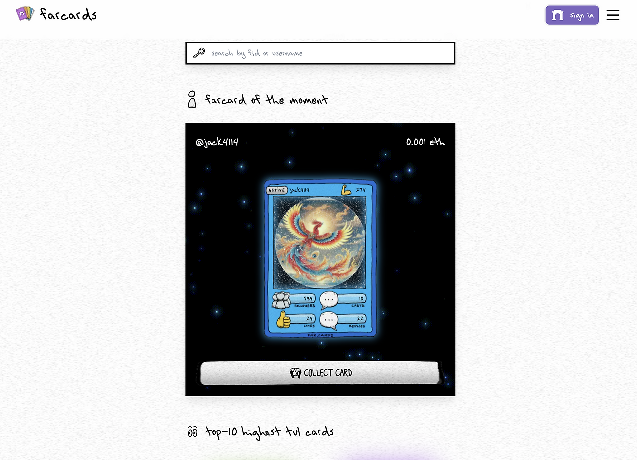 Farcards란 유니크한 NFT 콜렉션으로, Community-Driven 프로젝트입니다. Farcast 유저들은 누구나 싱글 버튼을 눌러서 생성할 수 있습니다.