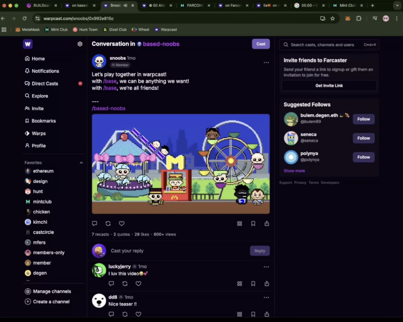 각각 유명한 건축물 NFT Visual Cards 로 만들었다고 합니다. 각각의 빌딩을 합치는 방식으로 생성했습니다. Mint Club에서 Statue of Liberty 구매하면 되고, Warpcast 에서 Regular Raffle 진행을 해서 카드를 제공하는 방식으로 진행하여 홍보했다고 해요.