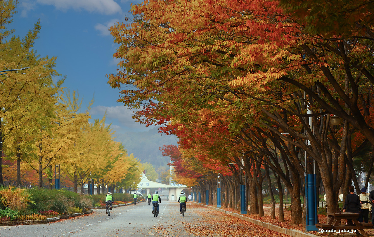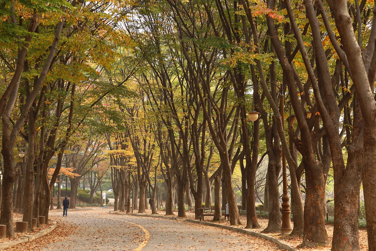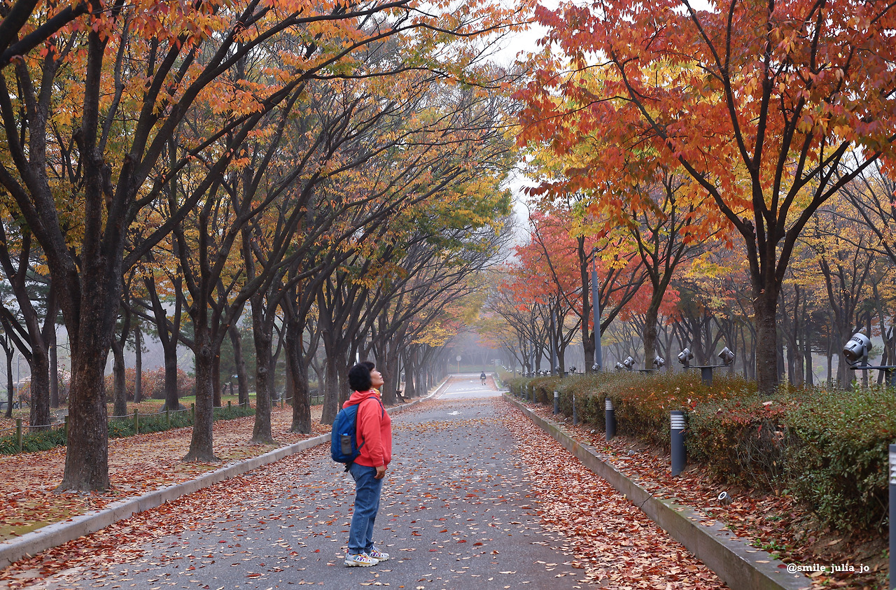 계절이 바뀌면 어김없이 이곳의 나무들이 옷을 바꿔서 입었다. 봄에는 화사한 분홍색 벚꽃나무들이 예쁜 길을 만들더니 여름에는 초록의 나무들이 눈의 피로를 보듬어주었다. 그리고 더위에 지친 사람들에게 아주 넓은 그늘을 만들어주었다. 그런 나무들이 고맙다고 늘 생각했고아주 좋아했다. 언제나 나무의 멋진 모습이 내 마음에 남겨지고 너무 좋다.