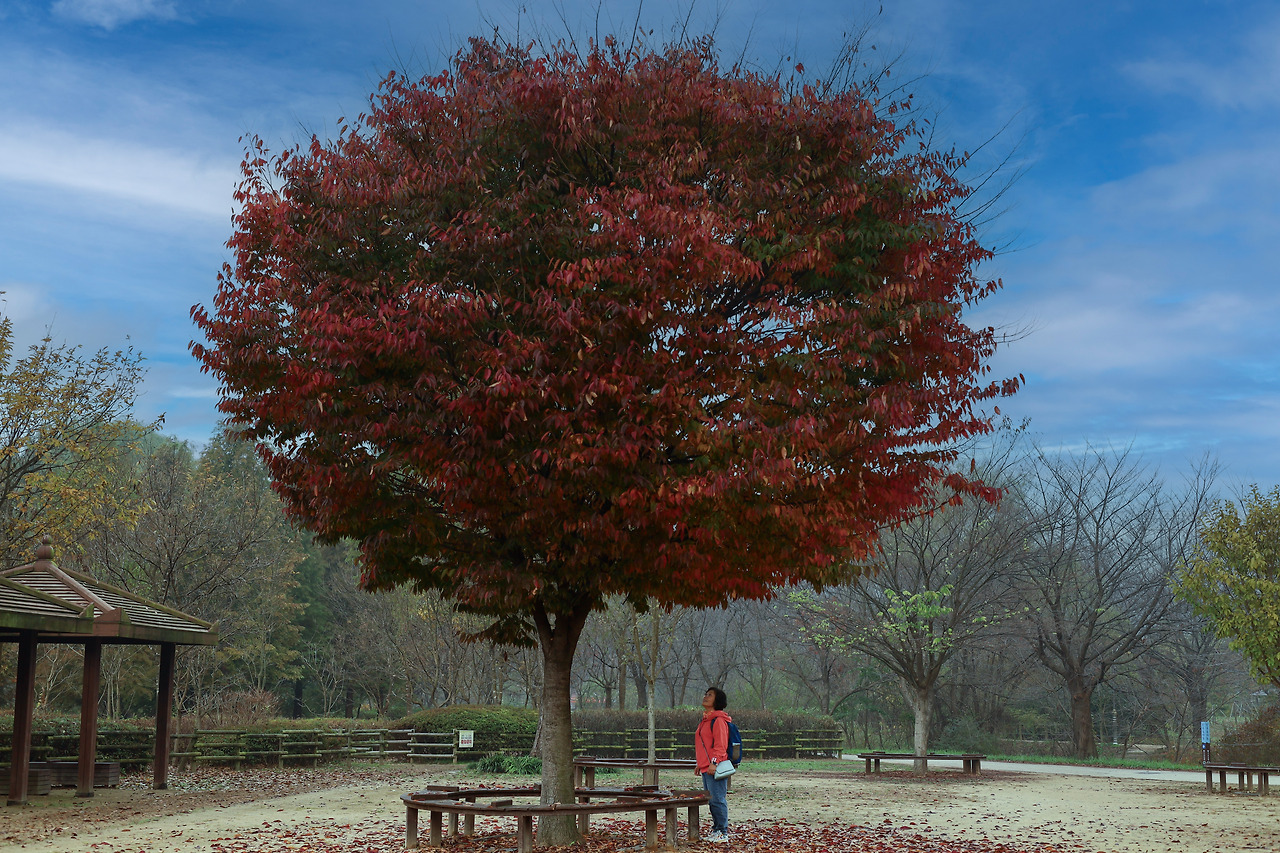 편의점에 잠시 들렀다. 이른 아침이라서 한산한 모습이었고 주위는 붉고 노란색의 나무들이 울창했다. 따뜻한 음료수가 달달했다. 다시 렌즈를 망원으로 바꾸어서 카메라 들고서 다른 곳으로 걸어갔다.