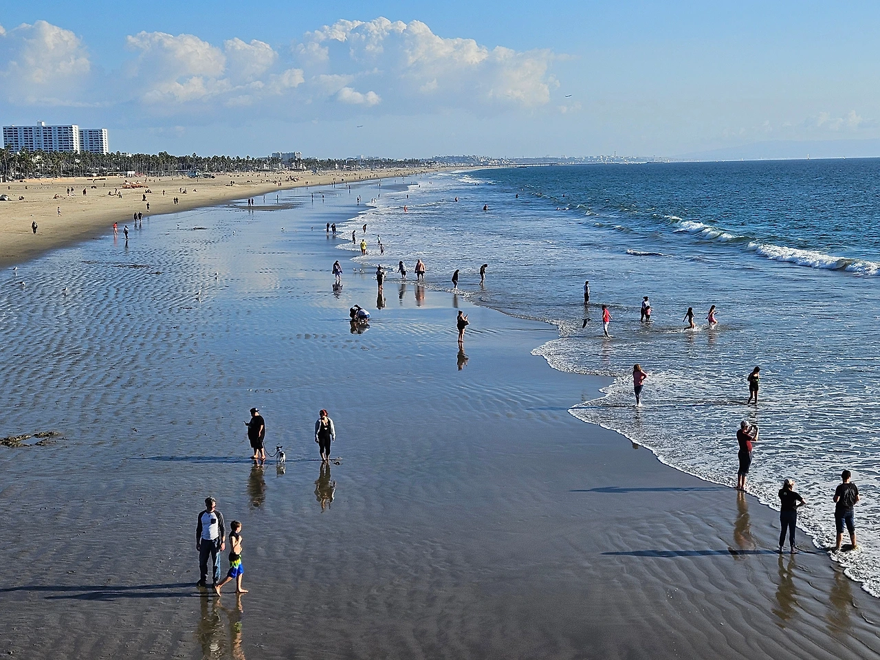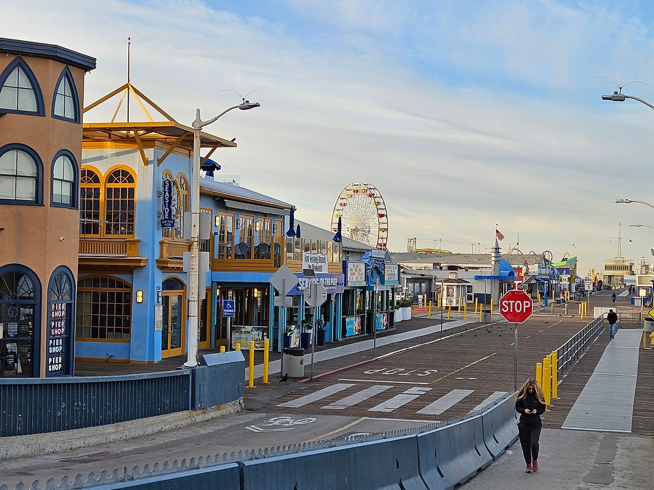 데크가 높아서 주차장도 해변도 아래로 보이는 곳이었다. LA다운타운에서 가장 가까운 위치에 해안도시 산타모니카였다. 1909년에 만들어진 beach pier해변 피어는 나무데크가 낡아 보이기도 했지만 많은 사람들이 즐거워하며 노는 모습이 보였다. 놀이기구도 있어서 해변산책뿐만 아니라 오락도 할 수 있는 곳이었다.