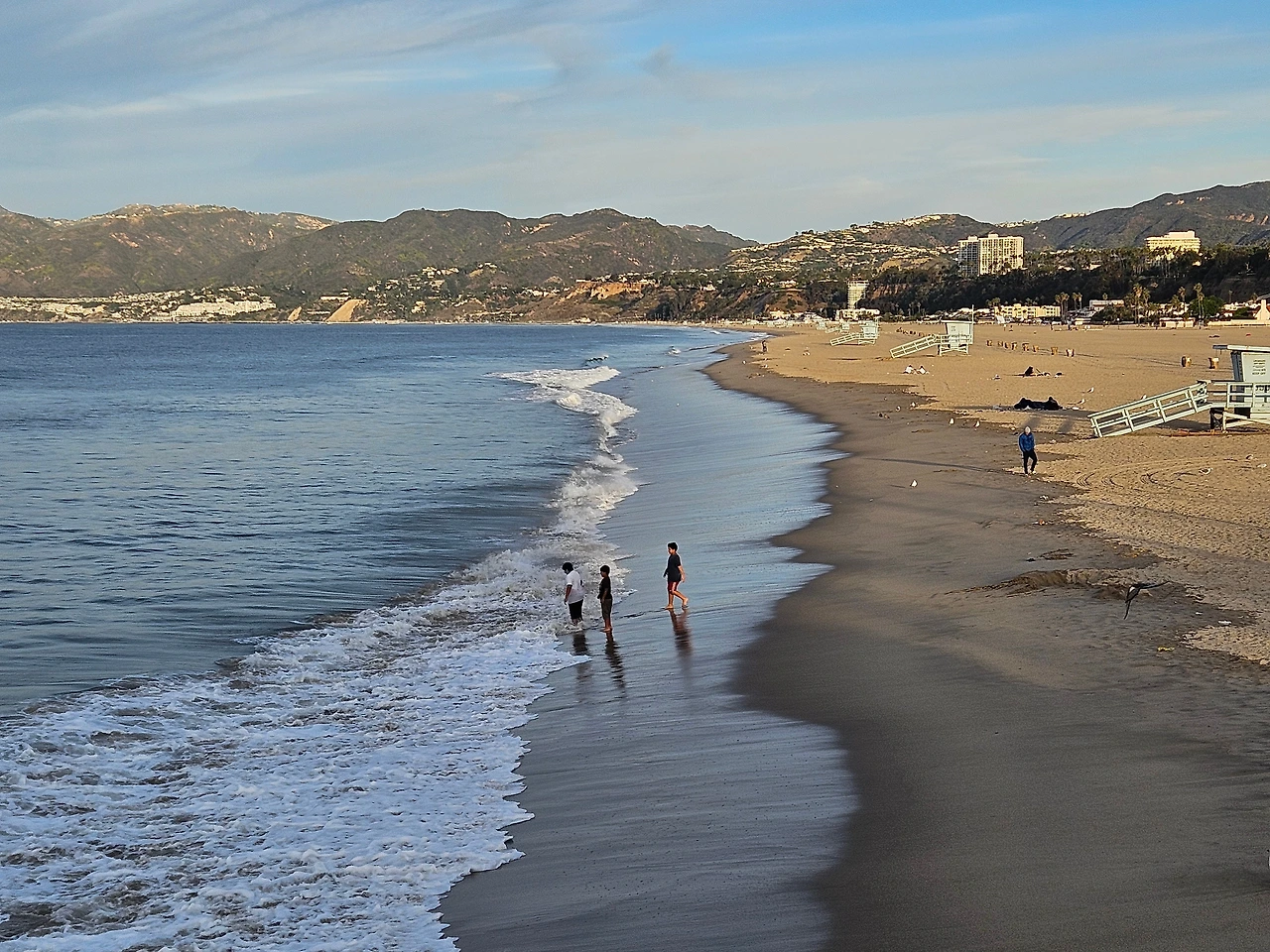그런데 도착 후부터 힘든 시차가 나를 괴롭혔다. 그야말로 어렵게 어렵게 시간을 보내다가 다음날 새벽 5시에 겨우 1시간 정도 눈을 붙였다. 알람 소리에 튕기듯이 일어나서 카메라가 있는 배낭을 메고서 산타모니카해변으로 나갔다. 숙소에서 도보로 10분 정도 걸으니 기다랗고도 기다란 해변이 보였다. 걸어가면서 감상이 아주 잘되었다.