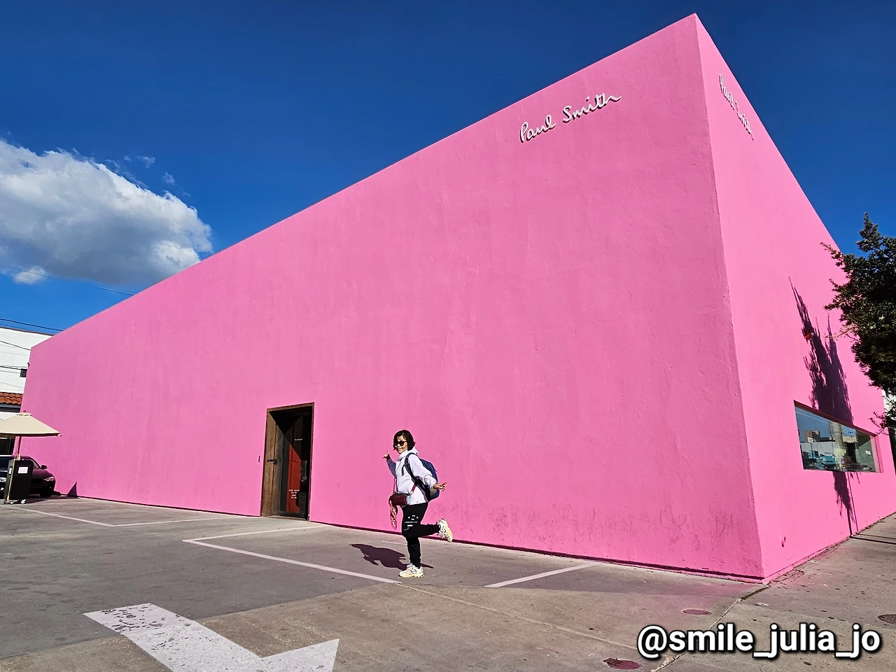 그리고 이곳 이 거리의 사진스폿 pink wall로 걸었다. 건물이 온통 핑크색으로 예쁜 건물에 가보니 몇 사람들이 사진 찍고 있었다. 나도 사진 찍으려고 도로 끝까지 조심해서 가야 했다.