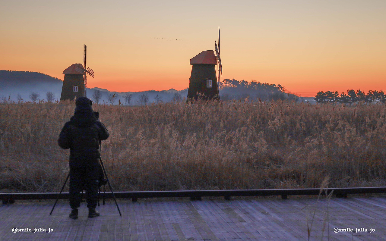 일출을 기다리는 동안 삼각대를 설치하는데 손이 너무 시렸다. 다시 주머니에 장갑을 끼었다가 벗었다가를 반복하니 몇 명이 사진 찍으러 또 왔다. 중년의 부부들이 다가오더니 얘기를 시켰다. 추운데 사진 찍는 거 괜찮냐고 질문도 하면서 등산을 매일 가는데 오늘은 여기 소래습지생태공원으로 왔다고 얘기했다. 나의 경우는 출사지에서 다른 분들을 만나서 얘기도 잠깐잠깐 하기도 했다.