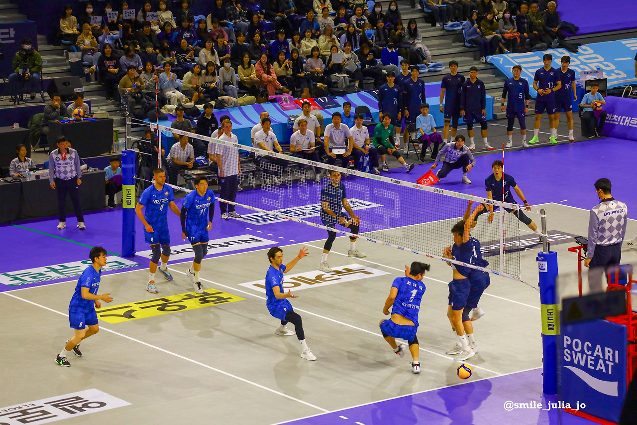 다시 경기장에 카메라 망원렌즈 삼각대까지 챙겨 가서 관람석에 가장자리에 자리를 잡았어요. 삼각대로 고정하고서 카메라에 망원렌즈를 장착하고 이번에는 잘 찍어야지 하면서 배구 경기모습을 촬영해 보았어요. 주로 배구공이 가는 대로 눈길이 가면서 민첩하게 움직이는 선수들 모습을 사진에 담았어요.