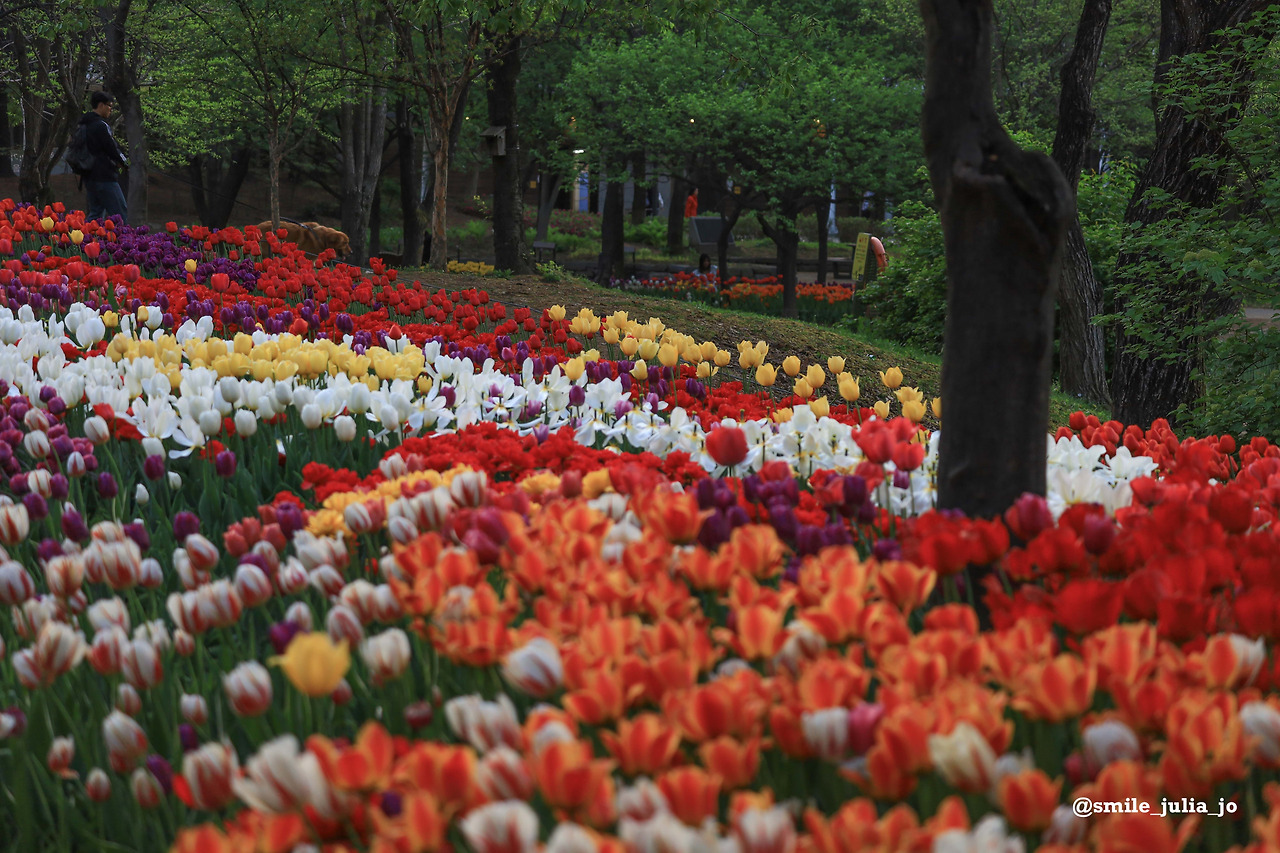 서울숲 튤립을 구경하러 온 사람들이 꽤 많았어요. 찬찬히 지켜보면서 모두들 너무나 예쁘다며 황홀해했어요. 서로 스마트폰으로 사진도 많이 찍던걸요. 이곳에서 데이트도 하면 좋겠다고 생각했어요. 내가 느낄 수 있는 그 장소의 분위기도 사진에 담았어요. 이동하면서 그렇게 그 시간 동안 사진을 찍고서 다시 카메라 들고 모여서 서로 인사 후에 흩어져서 돌아왔어요.