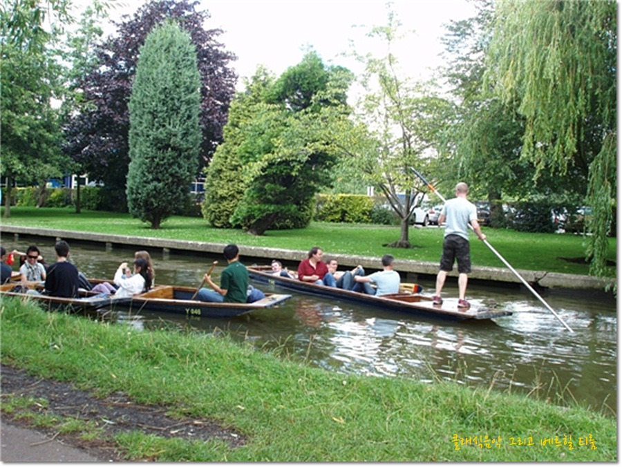 캠브리지 대학에서 우리는 하루 종일 시간을 보냈다. 날씨는 화창했고 학교 입구부터 볼거리가 풍부하게 있었다. 그래서인지 학교 교내에도 여행객들이 많았다. 모두들 추억을 남기기 위해서 사진 찍고 도란도란 얘기하는 여행객을 위한 배도 탈 수 있게 된 걸 보았다. 강의 이름이 캠이라서 대학의 이름이 캠브리지라는 걸 들었다.