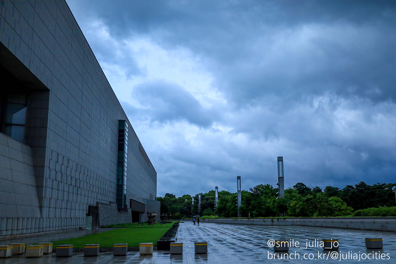 오전시간이라 한산한 모습이었지만 많은 비에 카메라 젖는 게 싫어서 우산 쓰고 정원을 다니지는 못했어요. 그리고 배낭을 엑스레이 검색대를 거치고 국립중앙박물관 안으로 들어갔어요. 올 때마다 느끼는 것처럼 하루에 모두 다 관람하기는 힘든 넓이와 규모였어요.