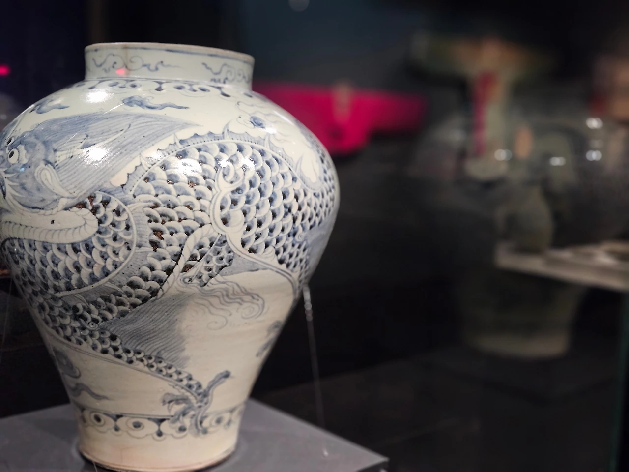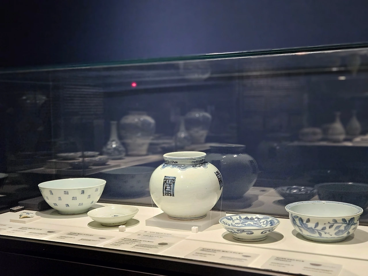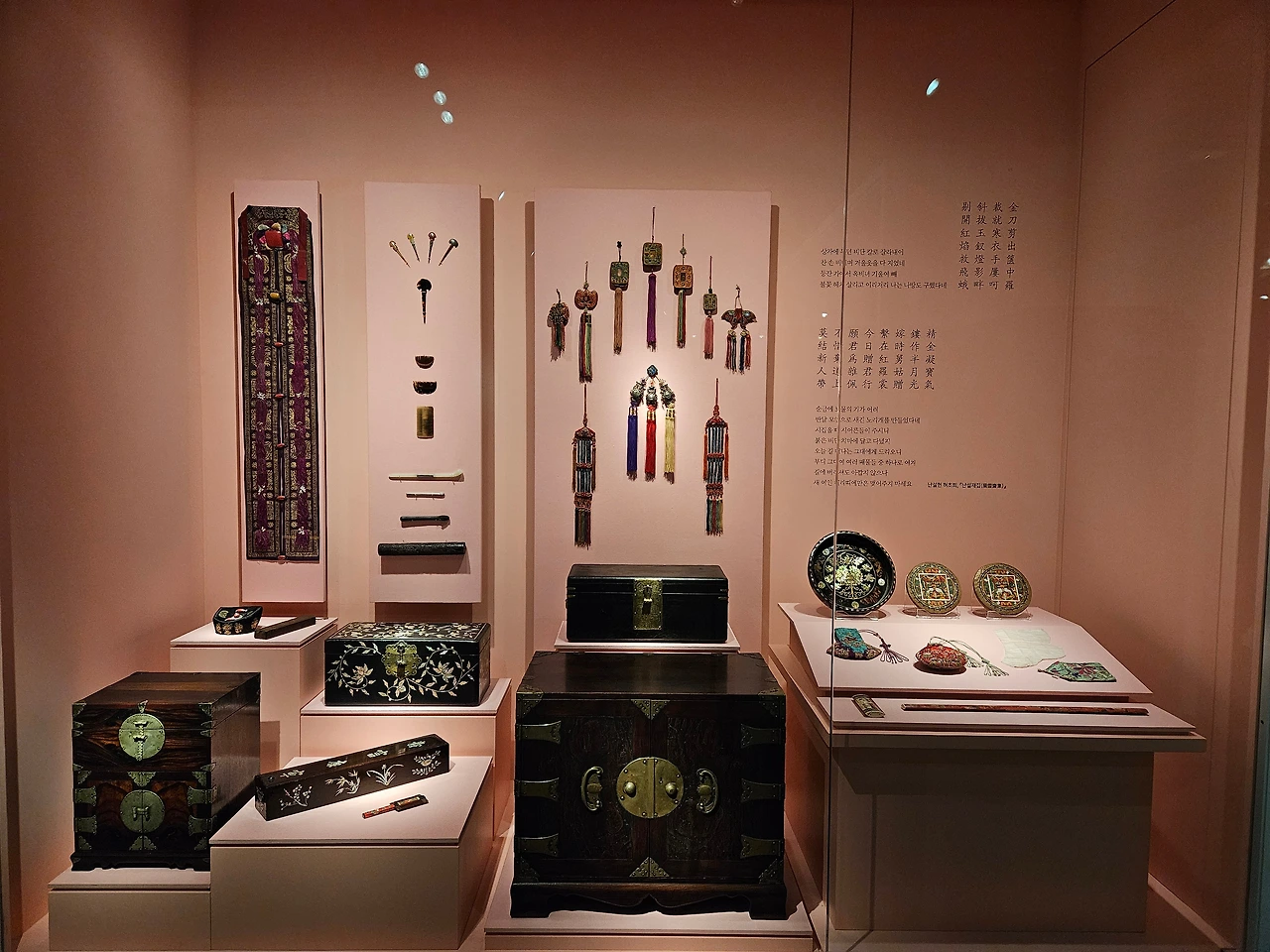 워낙에 박물관을 좋아라 하는 편이라서 천천히 둘러보니 분위기도 좋았어요. 관리하는 분들이 서있으면서 관람 중에 주의사항을 알려주고 있었어요. 여기저기 보면서 사진 찍어도 되냐고 묻고 나서 찍었어요. 공예품들 중 눈에 띄는 펼쳐서 진열된 키가 큰 병풍을 보고 사진 찍었어요. 유리 진열장안에 도자기, 공예품, 책들도 책장에 전시되어 있는 듯요.