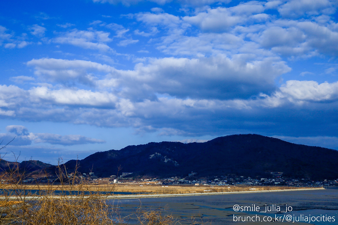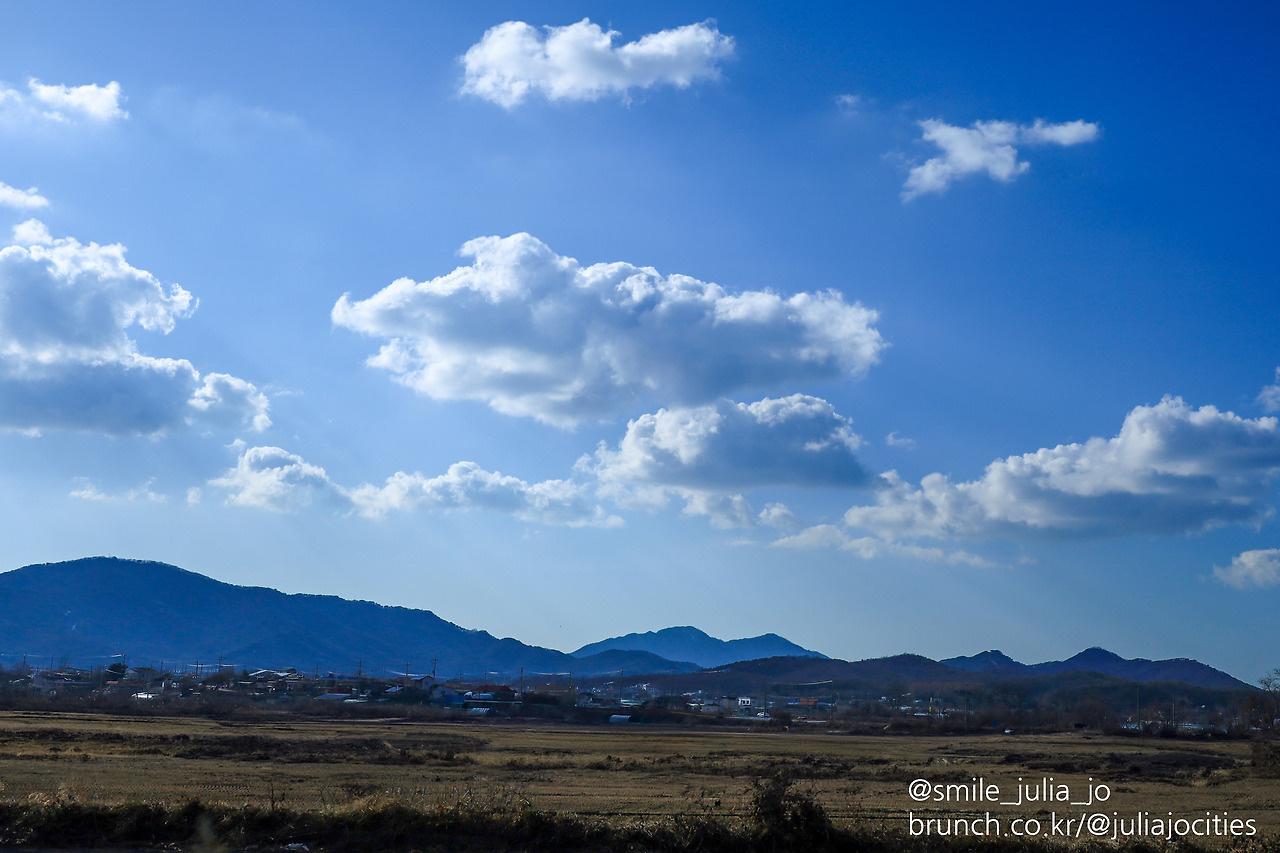 연휴 바로 전 토요일 날씨가 겨울치고는 따뜻했고요, 며칠 동안 밋밋하던 하늘에 구름이 생성되던걸요. 그런 모습을 보고 있다가 점심시간 이후에 출발했어요.