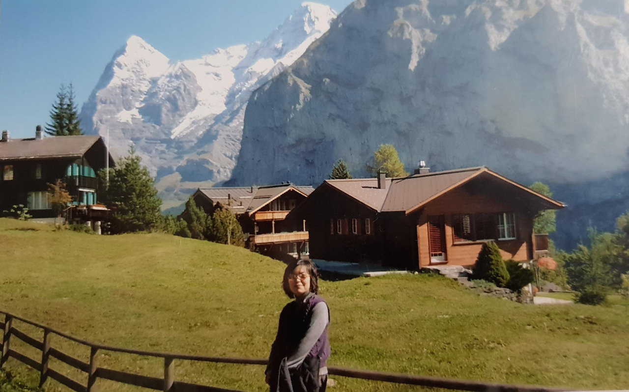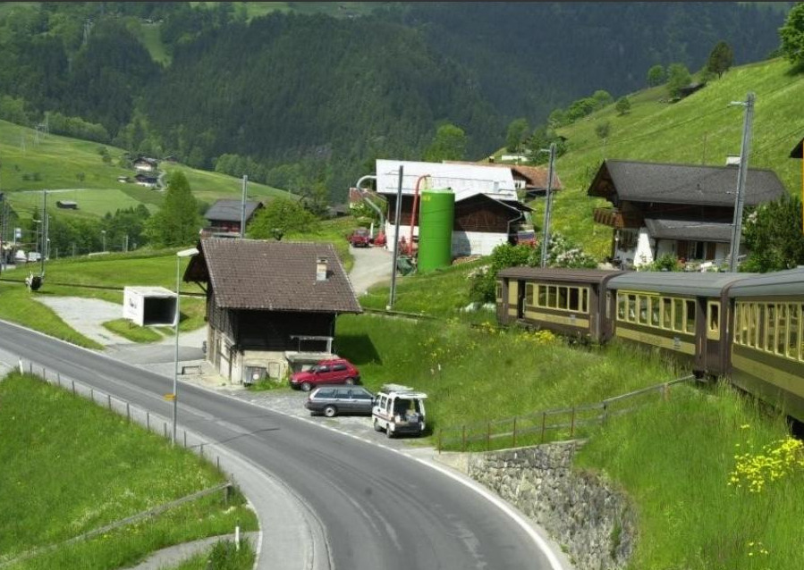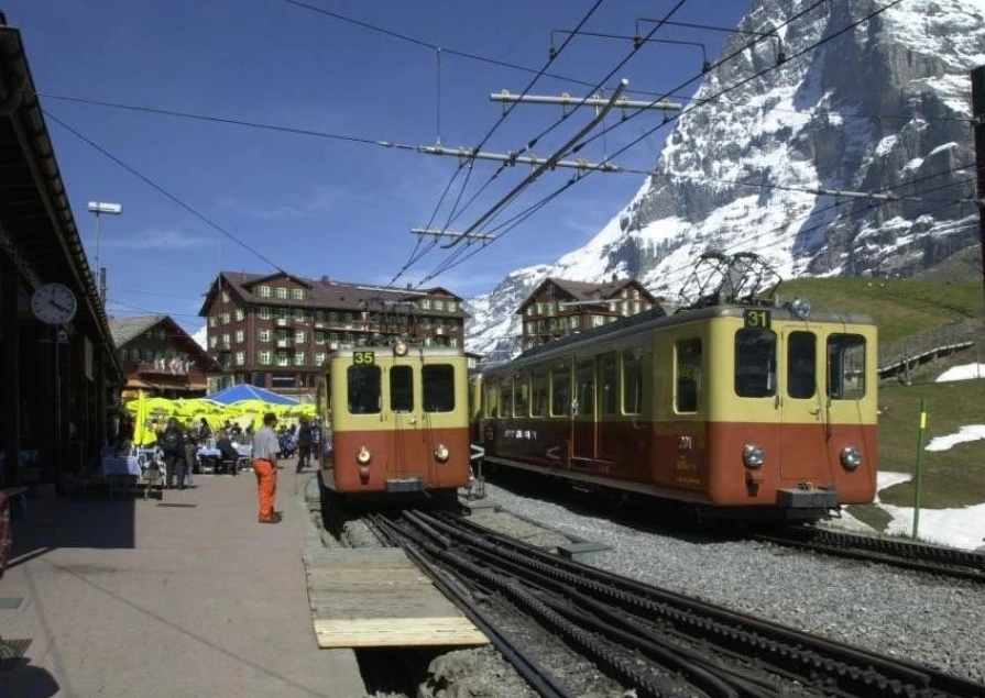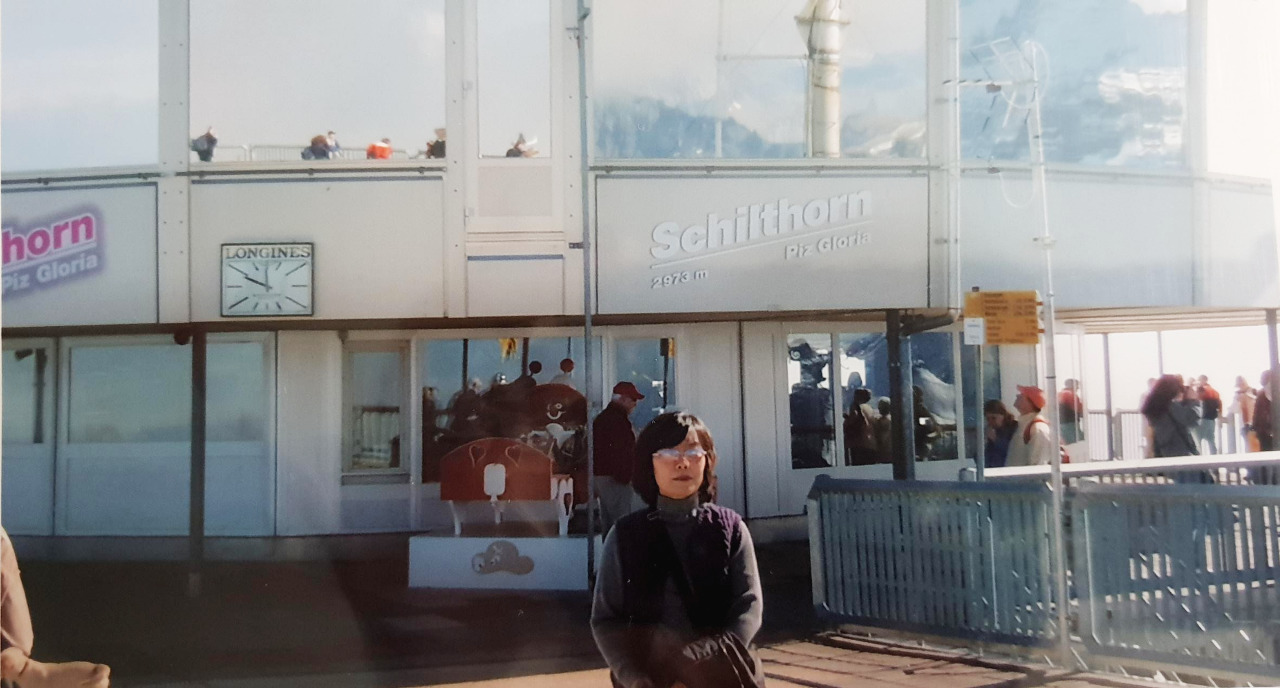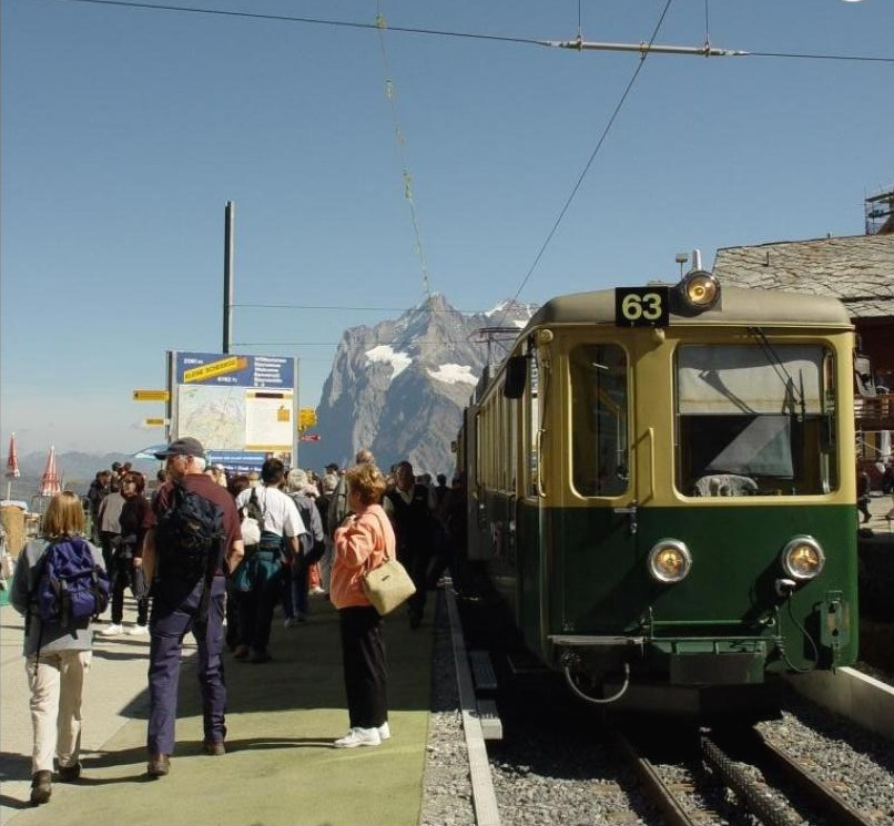 다음날 아침 기차역으로 가서 쉘트론(Schilthorn)까지의 좌석을 확인했다. 또 다른 한국인을 만나서 같이 동행했다. 기차에서 융프라우로 가는 사람들보다 먼저 내렸다. 거기서 다시 꽤 커다란 케이블카를 탔다. 케이블카 안에 큰 개를 동행한 여행객도 있었다. 자신이 여행할 때 맡겨놓거나 하지 않고 큰 개를 가족 동반하듯 데리고 다녔다. 여행가방을 가지고 온 사람도 있었다. 케이블카 내려서 그림 같은 집들을 보고 여행가방 가지고 올라온 사람들이 부러웠다.