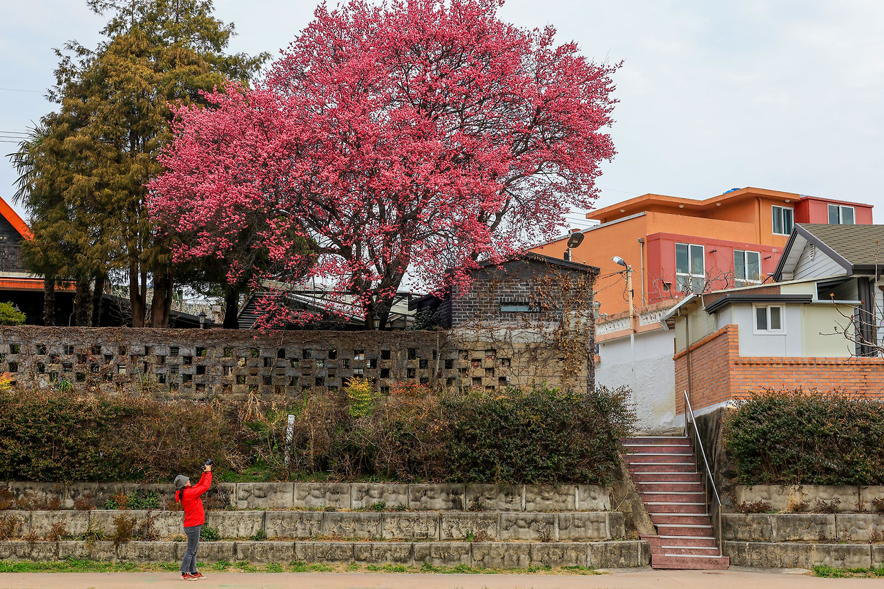 그 마을에도 홍매화 꽃나무들이 여기저기 많아서, 관찰하고 사진 찍으며, 마을 이곳저곳을 다녔어요.