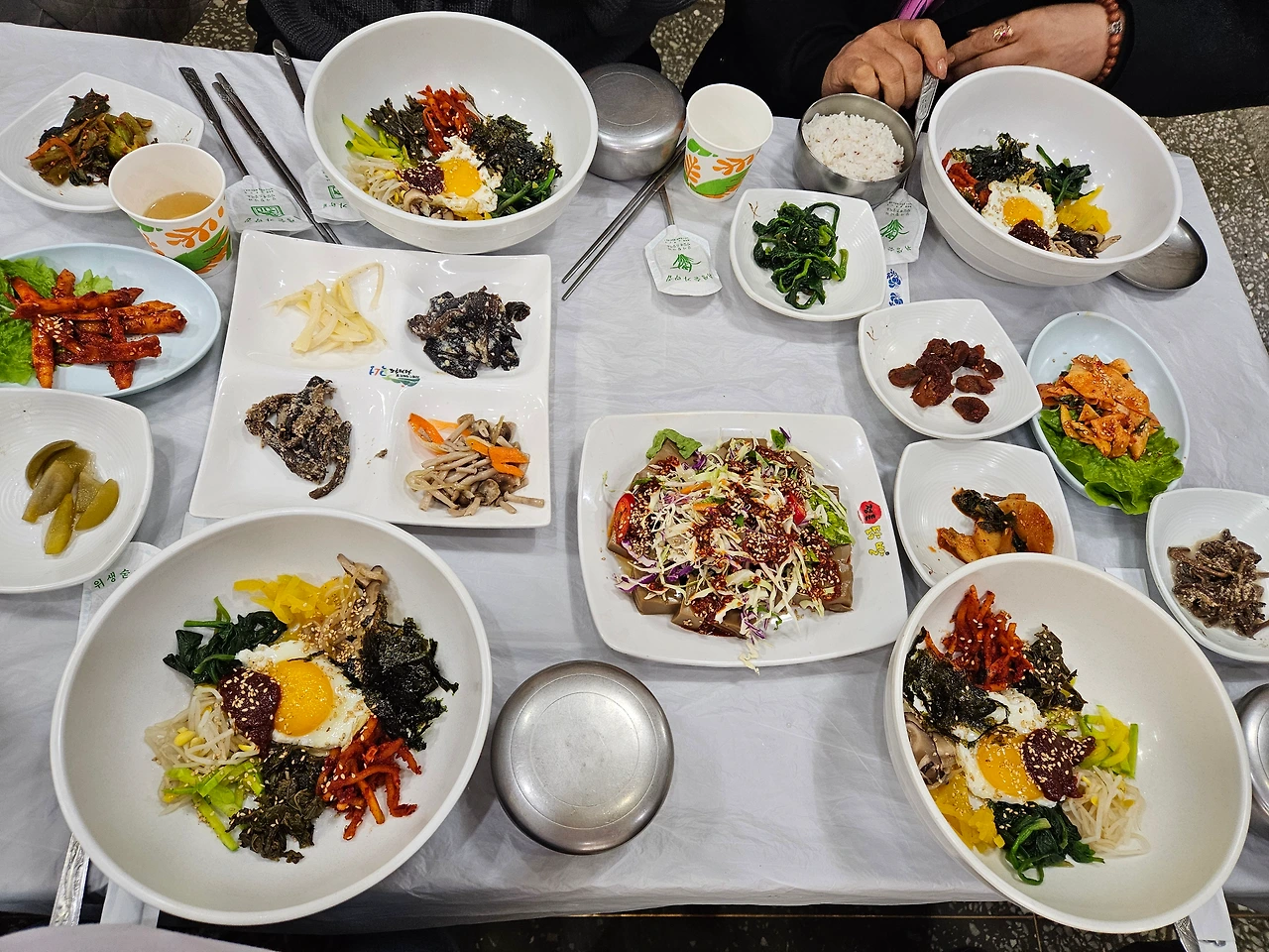 절의 전경이 꽤나 넓은 송광사에 들러보고서, 20분 정도 다시 걸어 나와서, 점심을 먹으러 식당에 모였어요. 아침도 제대로 못 먹은 일행들은 맛있게 먹었어요.