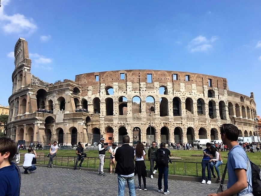 다음날은 검투사들의 대결과 호화로운 구경거리가 펼쳐지던 거대한 로마의 원형경기장 콜로세움부터 보러 갔다. 어느 도시를 가던지 그 도시를 파악하기 위해서 대중교통 버스와 다른 것들을 갈아타고 다녔다. 다른 도시들보다도 깔끔하지는 않았다. 콜로세움을 찾아갔을 때 많은 여행객들이 그 경기장을 감싸고 관람하며 서있었다. 단체 여행객도 눈에 띄었다. 시내의 도로를 작은 버스로 단체로 여행객들이 이동하는 걸 보았다.