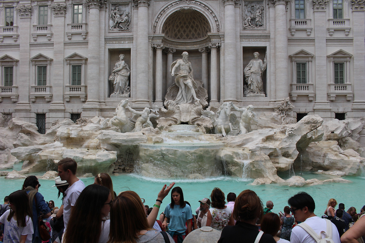 그 계단이 무슨 마법을 부리는 것 같았다. 여행객 모두를 오랜 시간 동안 붙잡아 두었다. 스페인 대사관이 있어서 스페인 광장이라고 했다. 진실의 입에 도착했을 때는 그 영화 속의 장면 인형 같은 외모의 오드리 헵번이 생각났다. 사진 찍고 추억을 만드느라고 대부분 여행객들은 행복해했다. 트레비 분수까지 의 영화 ‘로마의 휴일‘의 거리를 모두 보았다.