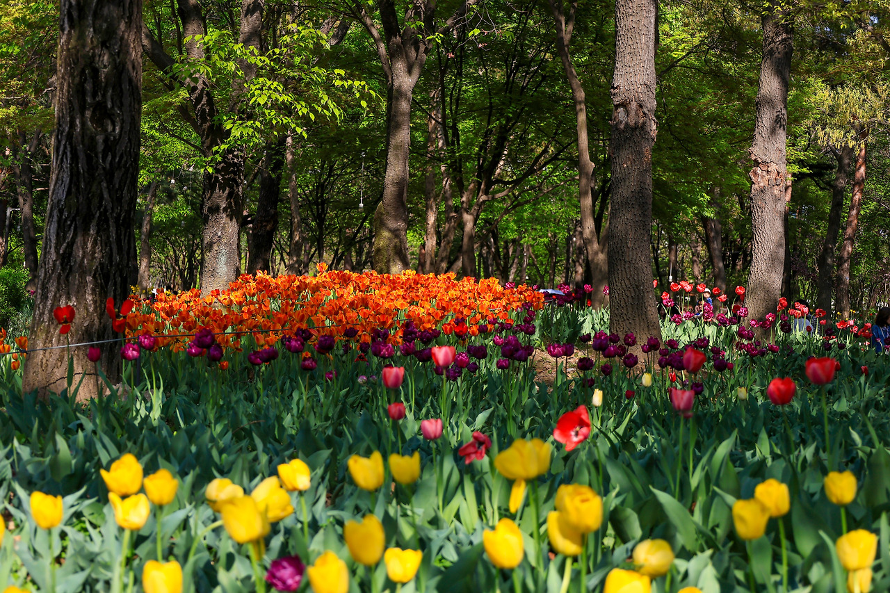 그래서 같은 장소 서울 숲일지라도 확연히 다른 사진 작품이 탄생되거든요. 일요일 그날 많은 인파 속에서 사진을 담았어요. 서울 숲의 유명한 튤립은 빽빽하고 풍성했던 작년보다도 훨씬 꽃이 적어 보였어요. 대체적으로 올해 꽃들이 개화시기도 늦고 풍성하지 않은 것이 여기 서울숲 튤립도 해당이 되나 봐요.