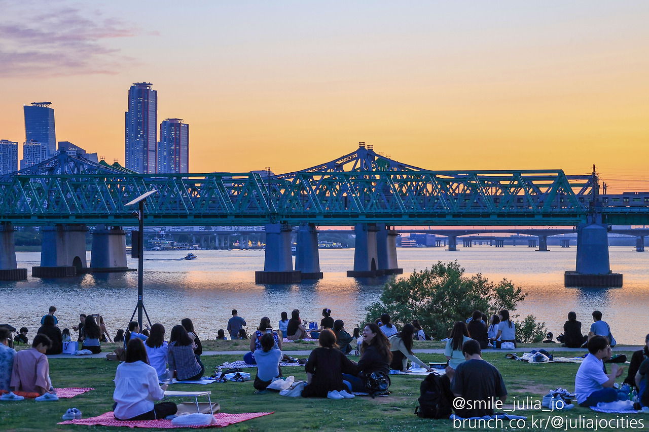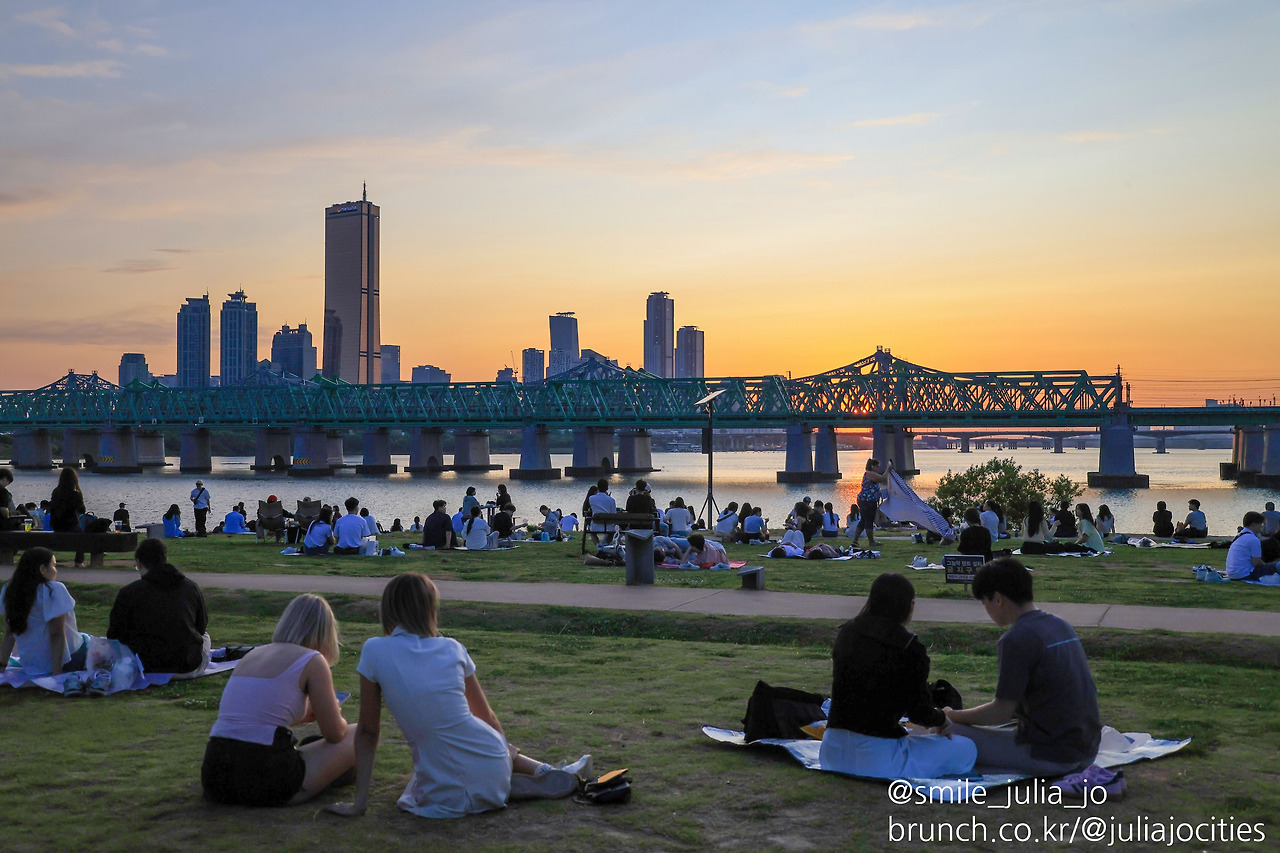 초여름은 퇴근 시간 이후에 얼마든지 일몰을 보는 시간이 되어요. 그래서인지 많이들 모여서 그 모습을 보곤 해요. 몇 군데가 서울에 있는데 그중에 노들섬을 가기로 했어요.