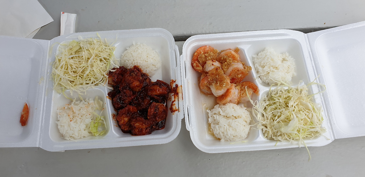 호놀룰루에서 차로 한 시간 가량 서. 북쪽으로 와서 Laniakea Beach에서 나름 거친 파도 속으로 수영해서 들어가는 거북이를 보고 근처에 푸드트럭으로 차로 이동해서 먹던 새우요리 중 한국인의 입맛에 맞는 매운맛도 있었다. 주위에 상인들이 새우를 팔지 말라고 해서 메뉴에는 바비큐만 표시되어 있지만 주문하면 맛있게 해 주셨다. 밥 더 드릴까요 하면서 친절하기도 하셨다.