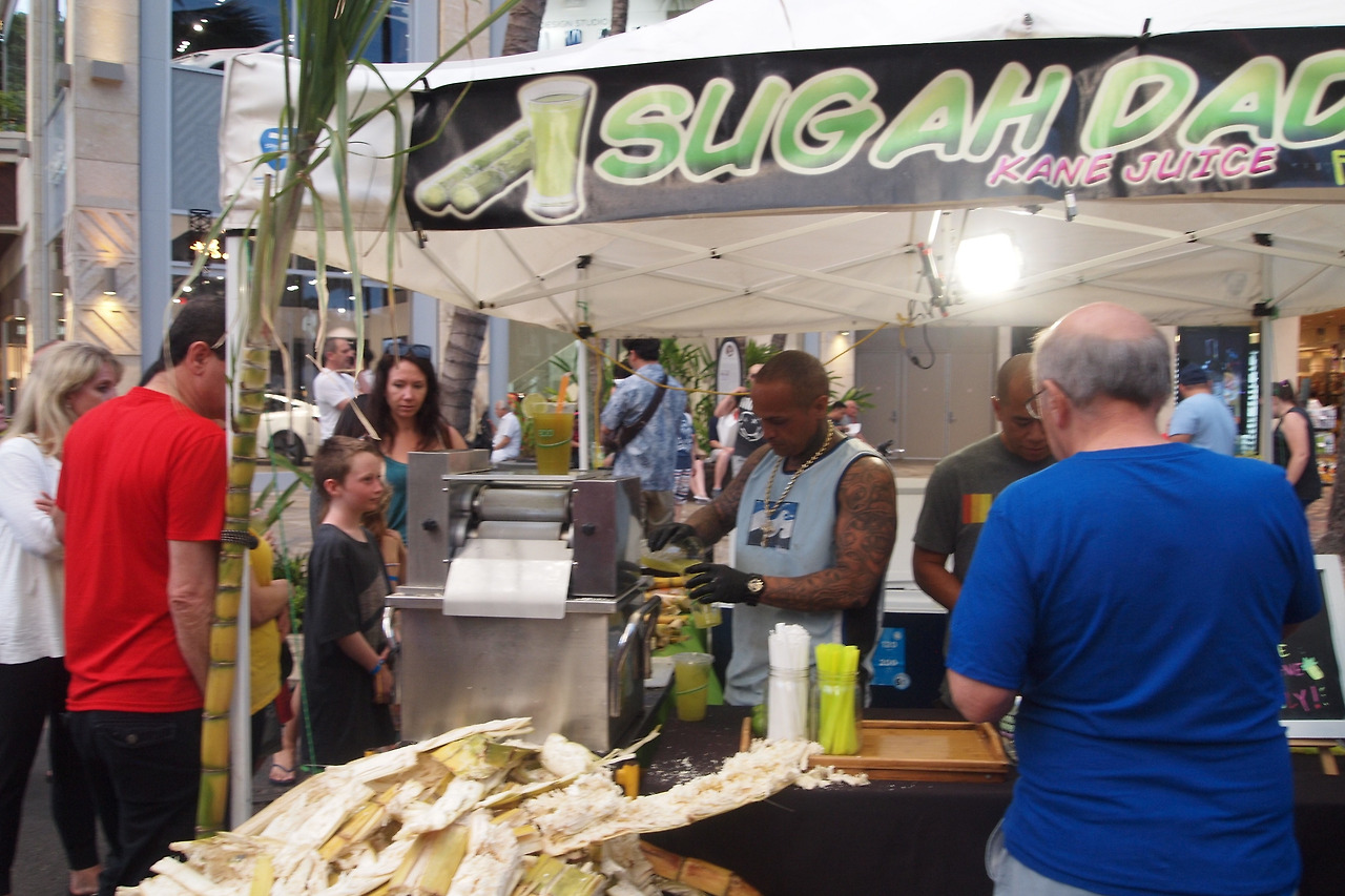 호놀룰루 칼 라카 우아 거리 kalakaua Ave에서 축제가 있던 날 도로를 막아놓고서 갖가지 물건들을 판매하는 중에 먹거리도 많이 있었다. 다른 먹거리들 틈에서 사탕수수를 정말 그 자리에서 기계로 짜내어서 주스로 판매하는 걸 보았다. 어떤 맛일까? 궁금했다.