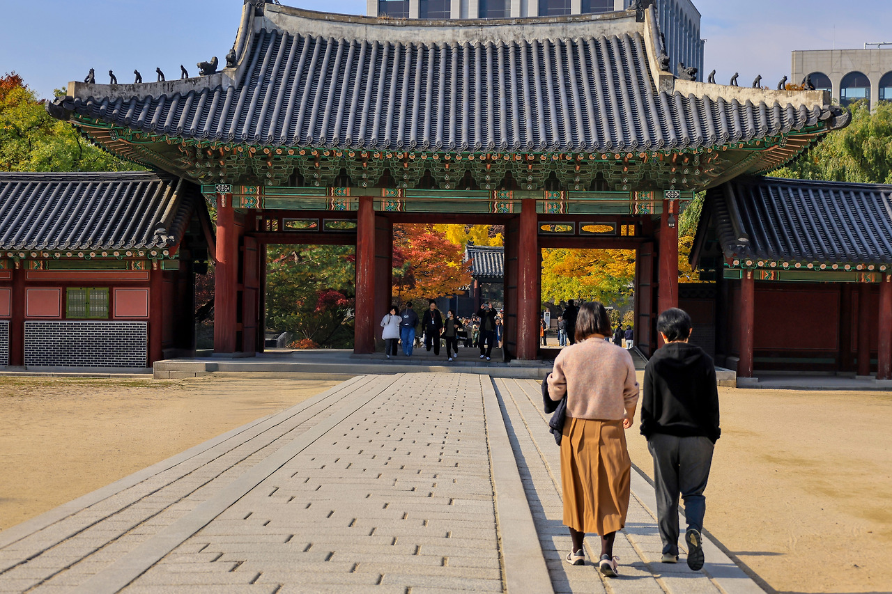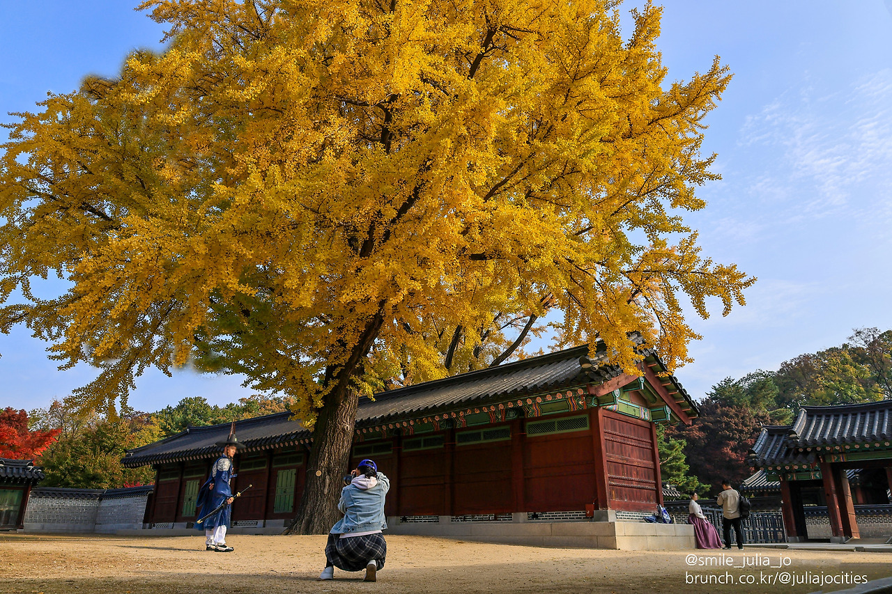 창덕궁에 외국인들도 많이 보였어요. 단풍나무 은행나무들을 아주 예쁘게 바라보면서 감탄하며 관람하는 모습이었어요. 손을 길게 뻗으며 혼자 스마트폰 사진을 찍으려는 외국인을 도와줄 수 있다고 말하고 사진도 찍어 주었어요.