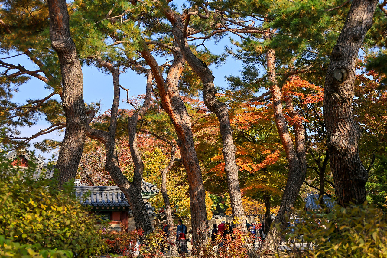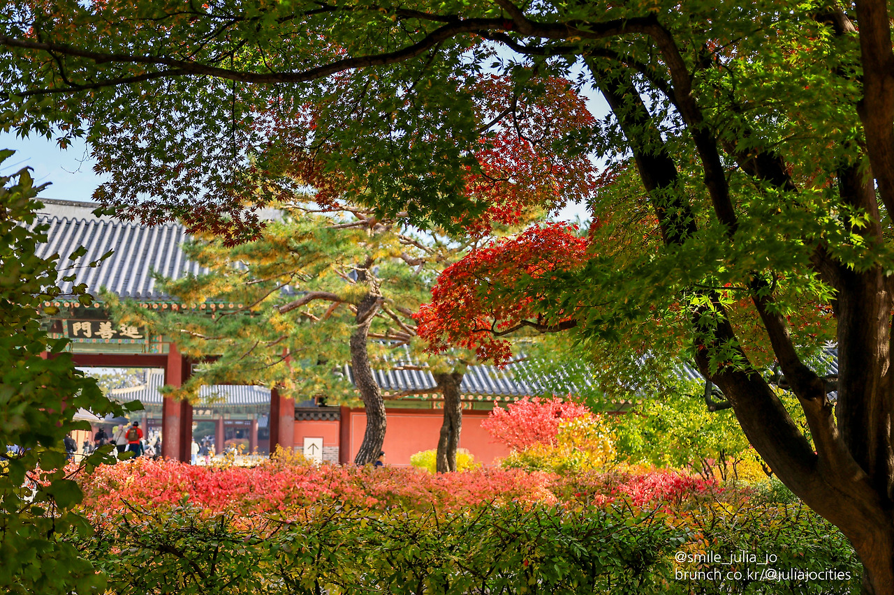 지하철로 종로 3가에 내려서 걸어서 도착한 창덕궁은 마침 입장료가 무료기간이었어요. 후원 입장권을 사려는 줄이 길게 보였어요. 지나쳐서 입장하고 보니 온통 알록달록한 창덕궁 모습이었어요. 고궁의 가을의 색감을 감상하며 다니면서 사진도 찍었어요.